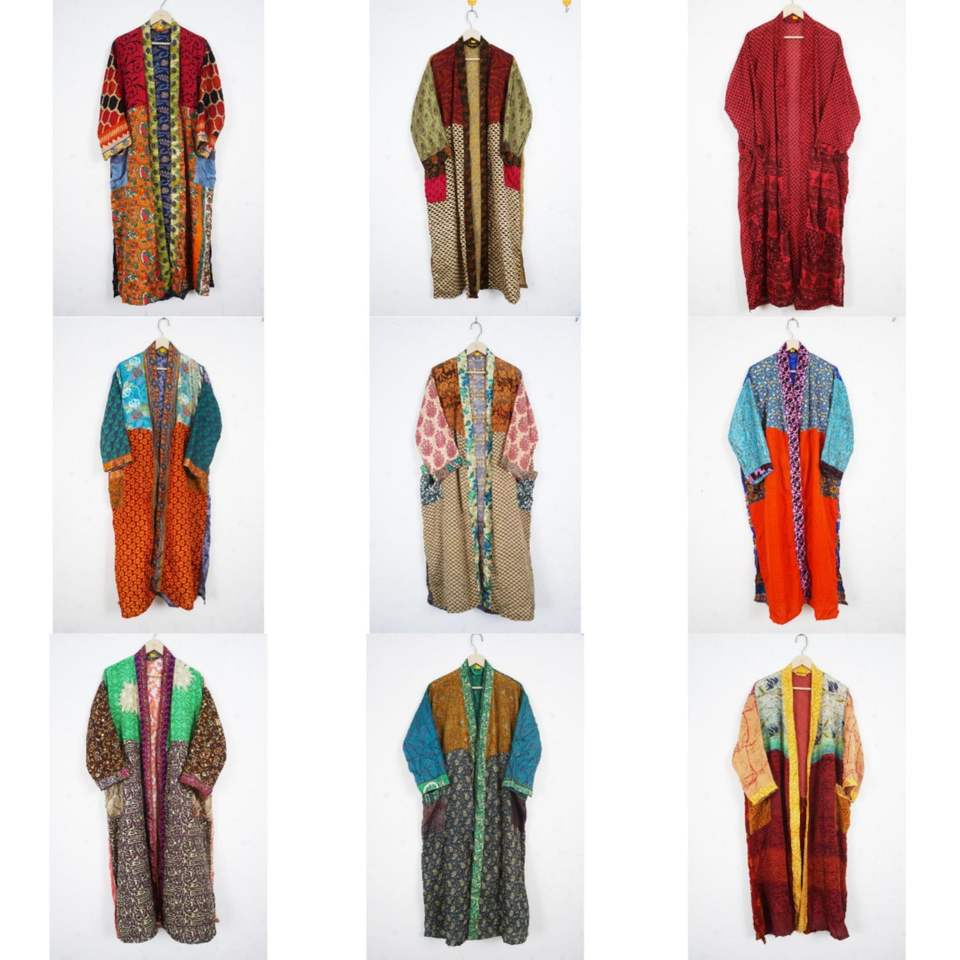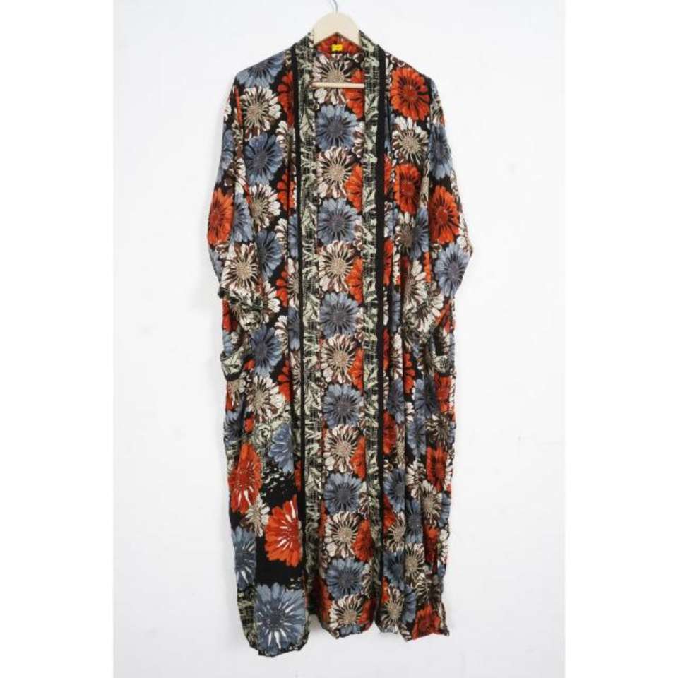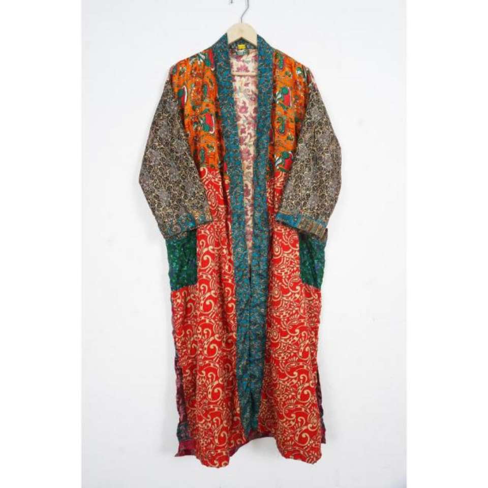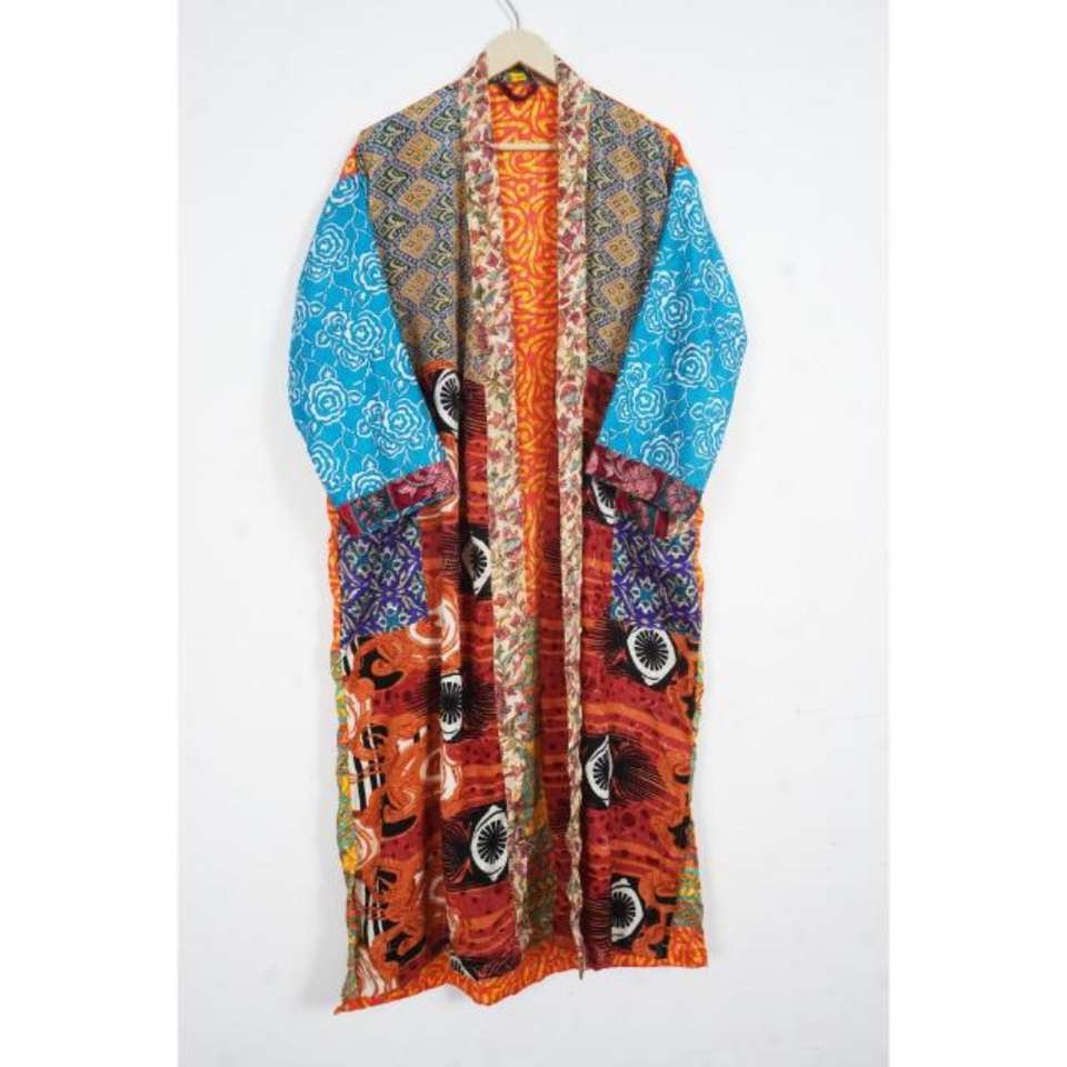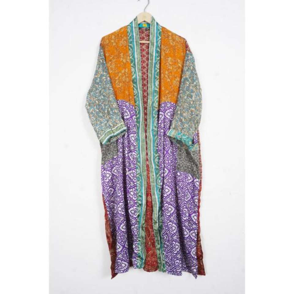 Vintage Patchwork Silk Sari Kimono Robe Bohemian Front Open Luxury Kimono Robe Beach Party Wear Kimono Bathrobe