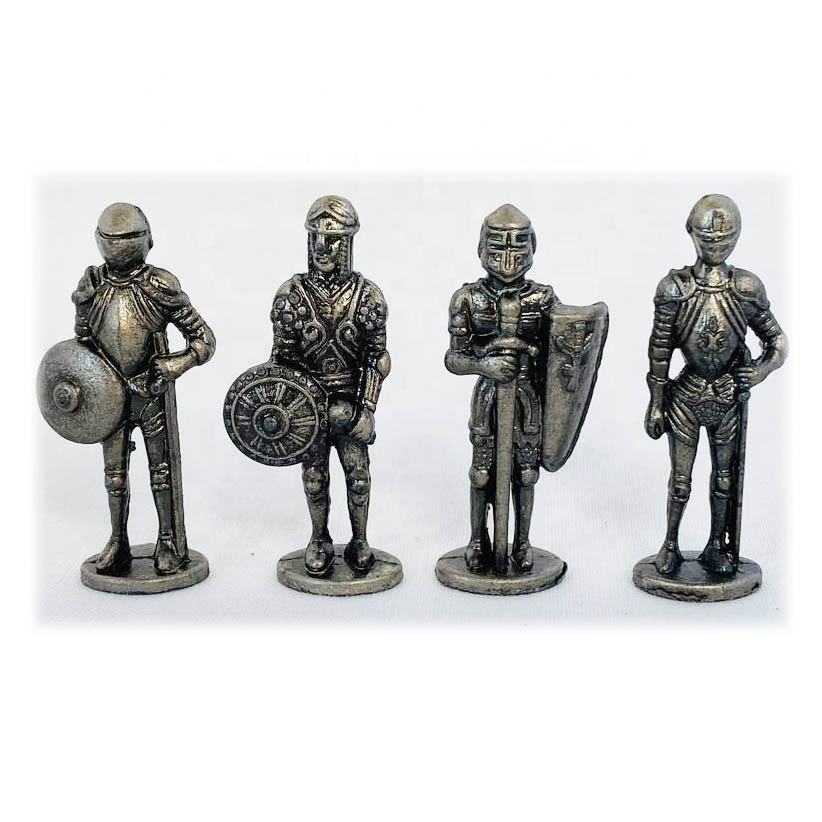 Vintage Pewter Knight-Conjunto de miniaturas, piezas de juego, antiguo Stock, armadura, regalo debajo de los soldados de estaño