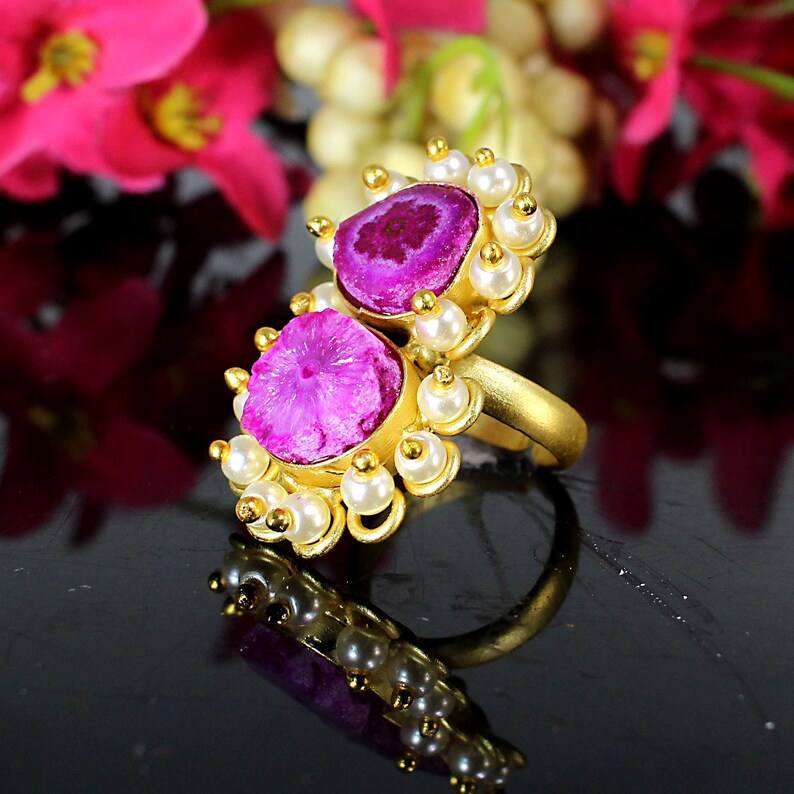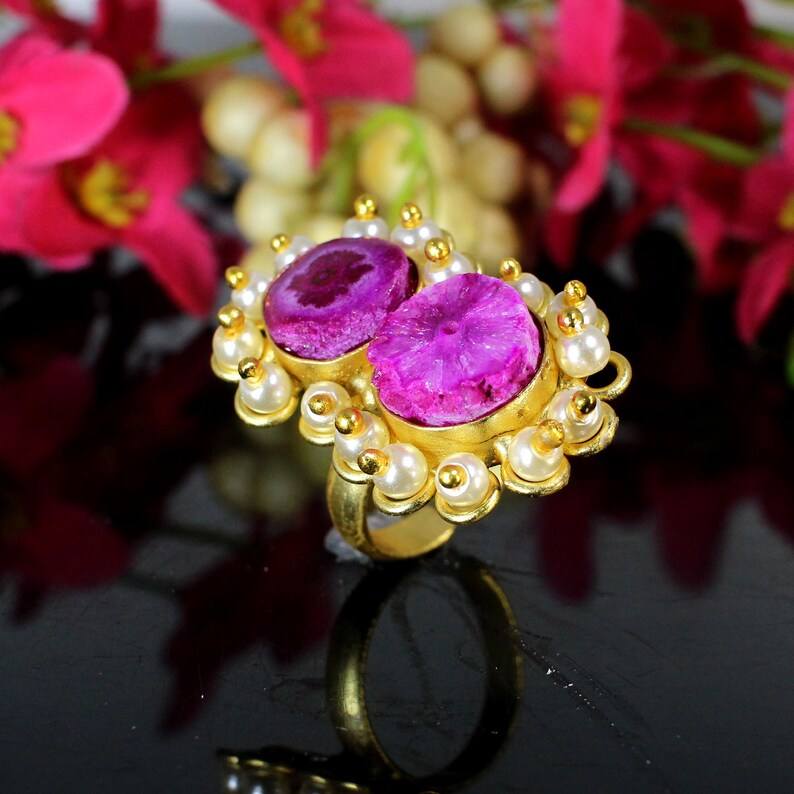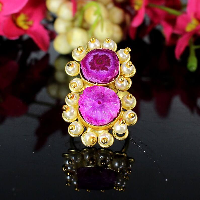 Pink Solar Quartz,White Pearl BeadsGemstone
