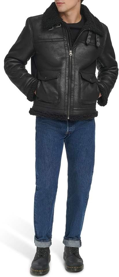 Chaqueta de Cuero Sintético Vintage para Hombre, Talla Grande, Corte Ajustado, Negra, Tejida, Transpirable, con Botones Delanteros con Logotipo, Ligera, con Cuello Camisero