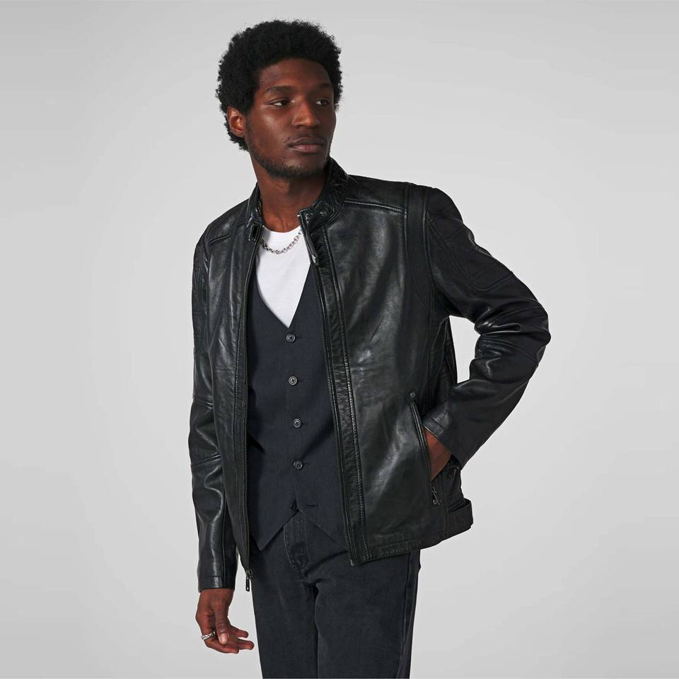 Chaqueta de cuero Vintage Racer-Chaqueta clásica ajustada para motocicleta con estilo retro, ideal para hombre informal negro