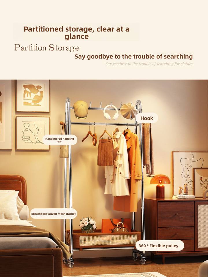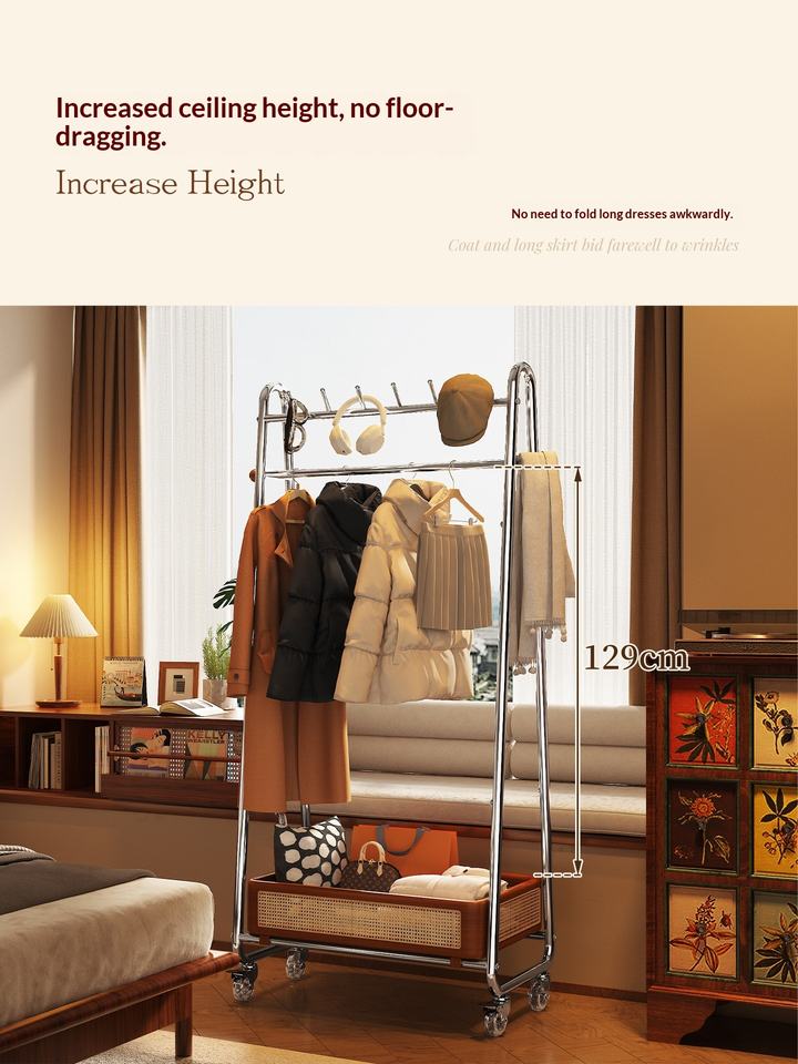 Perchero de Ratán Vintage, Perchero de Pie hasta Techo, Tendedero Vintage, Perchero Móvil de Esquina, Estilo Francés