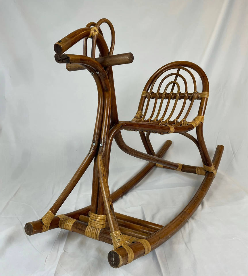 Caballito Mecedor de Ratán Vintage para Niños, Sala de Juegos Infantil, Mecedor de Ratán Natural Hecho a Mano en Vietnam