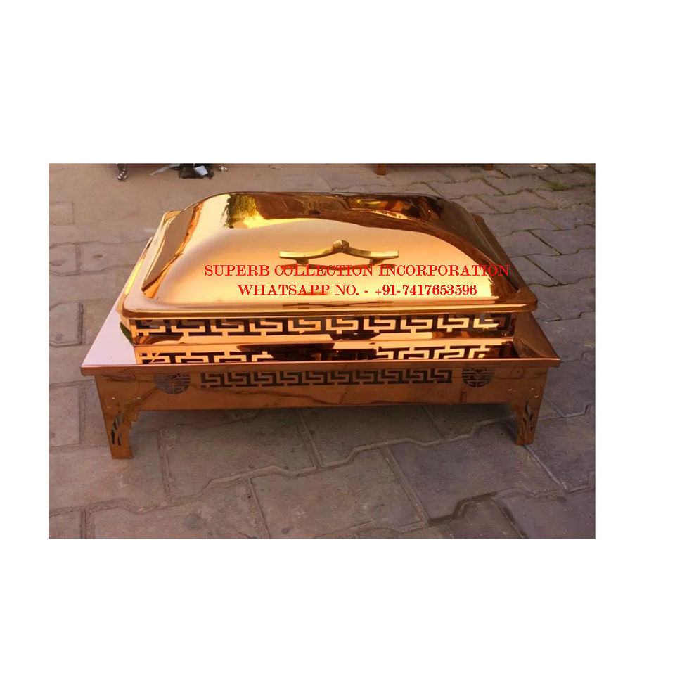 Plato de frotamiento de acero inoxidable chapado en oro Rectangular Vintage con tapa decorativa con diseño de llave griega para Hotel y restaurante Buffet