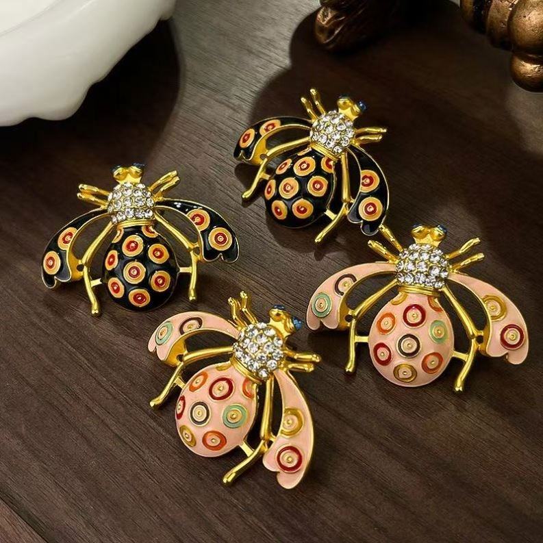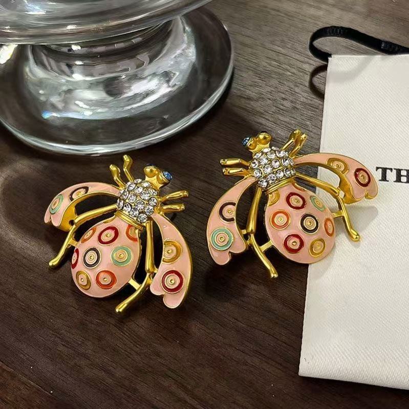 Pendientes de Aleación con Forma de Corazón Dorado Estilo Vintage Retro, Esmalte de Colores, Mariposa de Cuarzo, Accesorios de Moda Europeos y Americanos para Mujer
