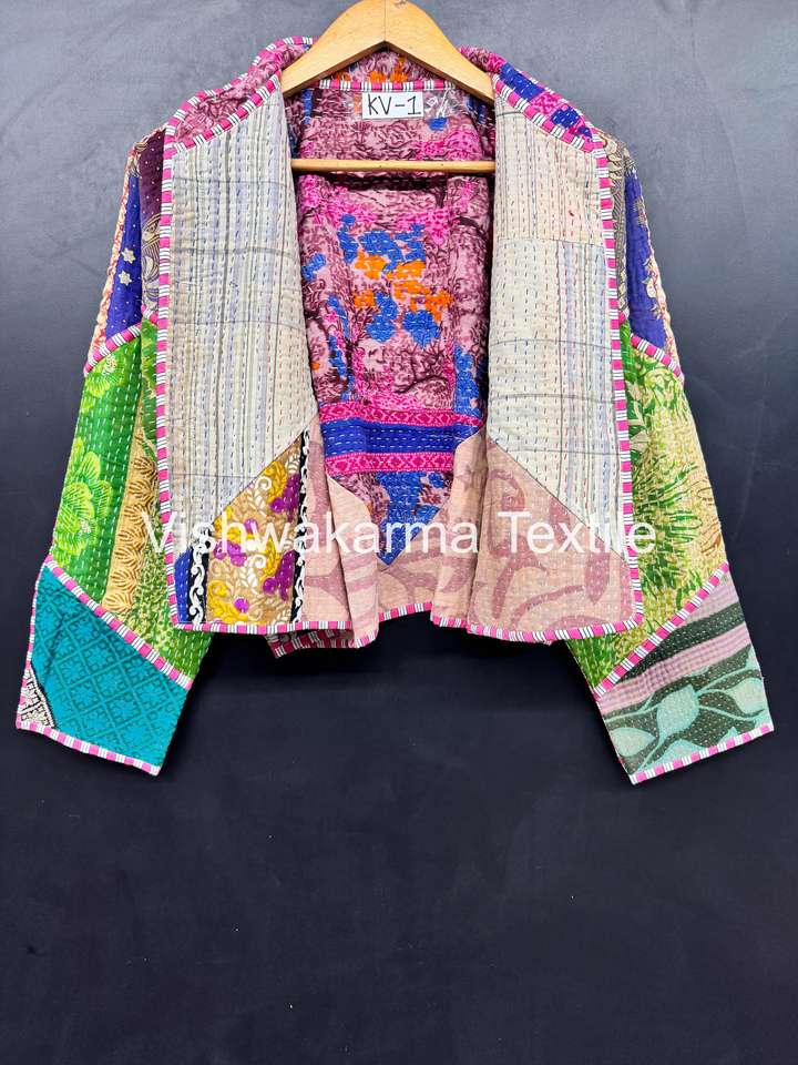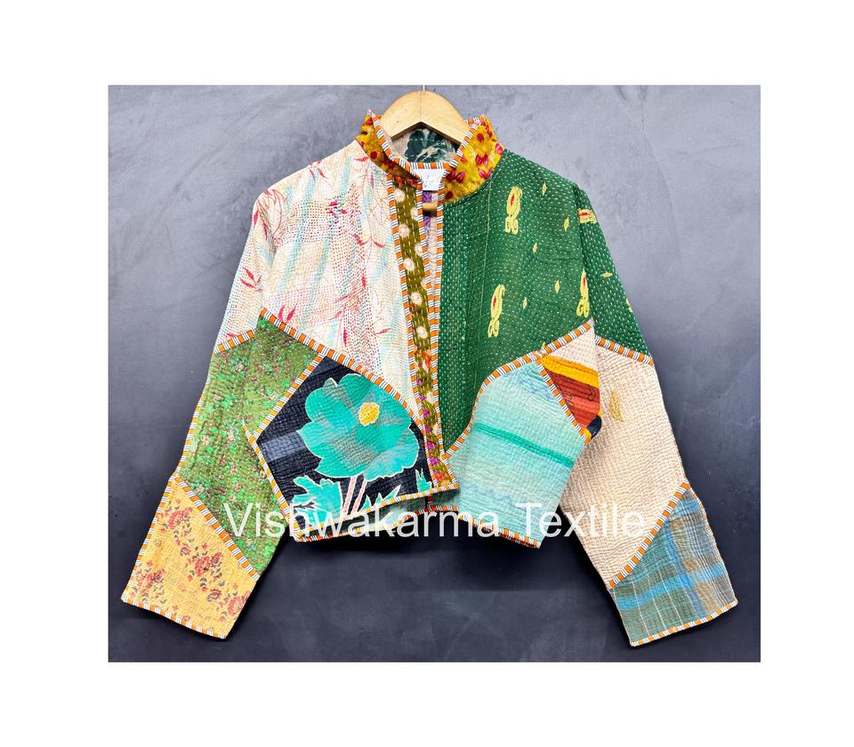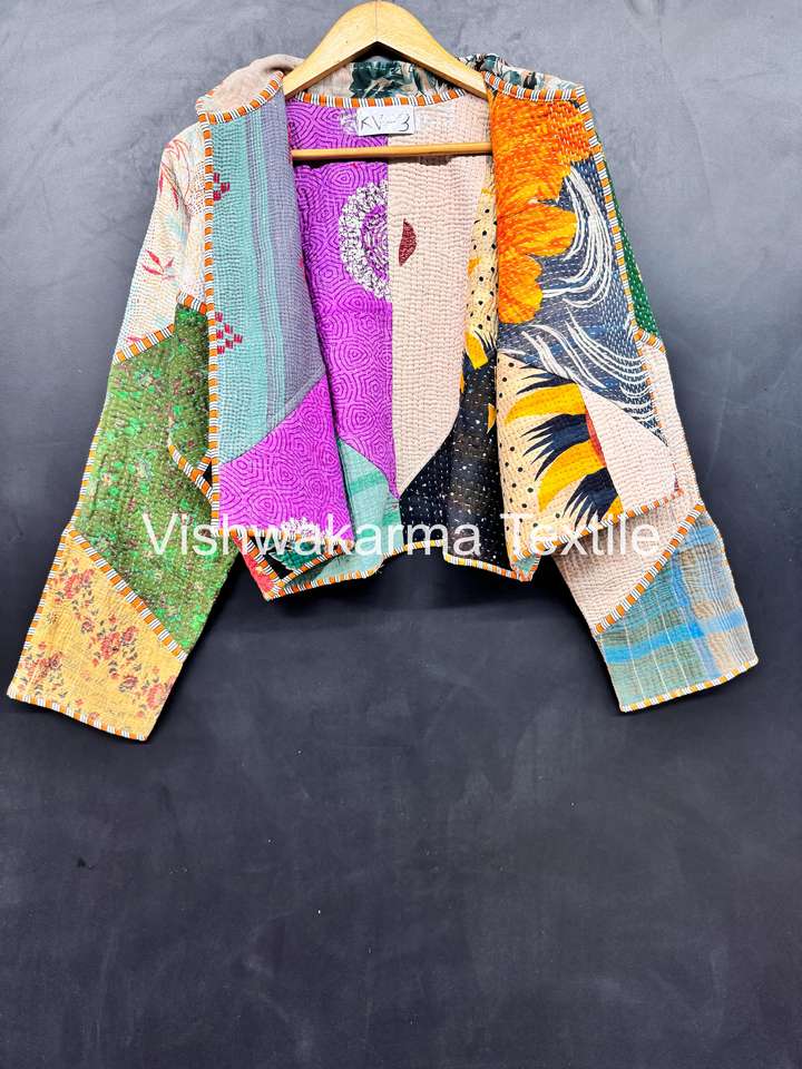 Chaqueta Corta Kantha Reversible Vintage, Hecha a Mano, Ecológica, de Algodón Puro, con Cuello Alto y Botones para Mujer, Chaqueta de Invierno