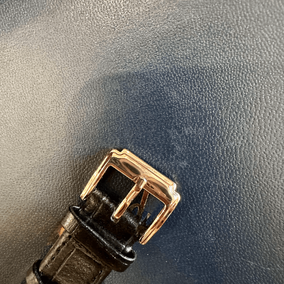 Reloj de Cuarzo para Mujer con Caja Bicolor en Oro y Plata, Correa de Cuero Negra y Esfera con Números Romanos Chopards
