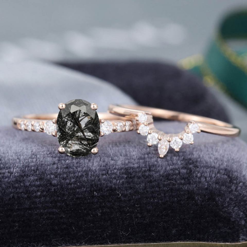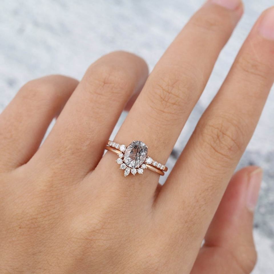 Estilo:Anillo de Cuarzo Rutilado Negro, a la Moda