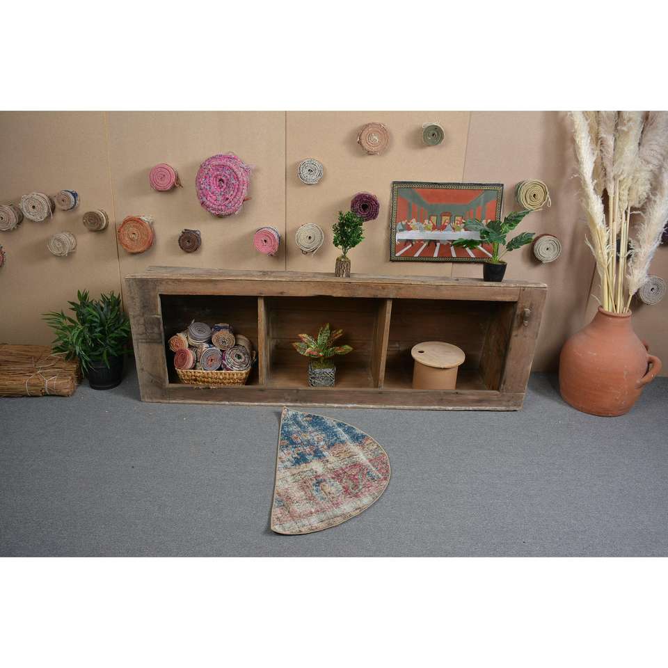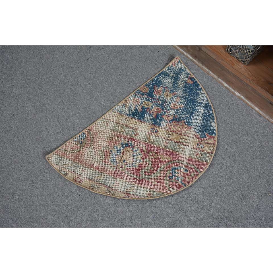 Alfombra Redonda Vintage de 2,5x1,5 pies (75x45 cm), Alfombra Turca con Borde Azul