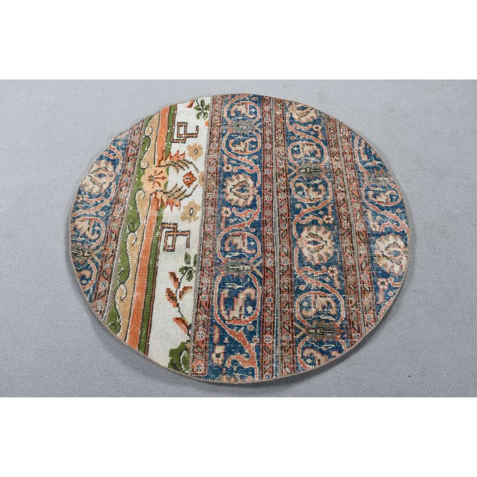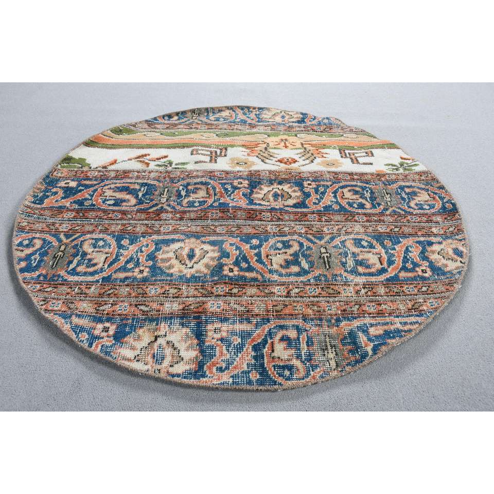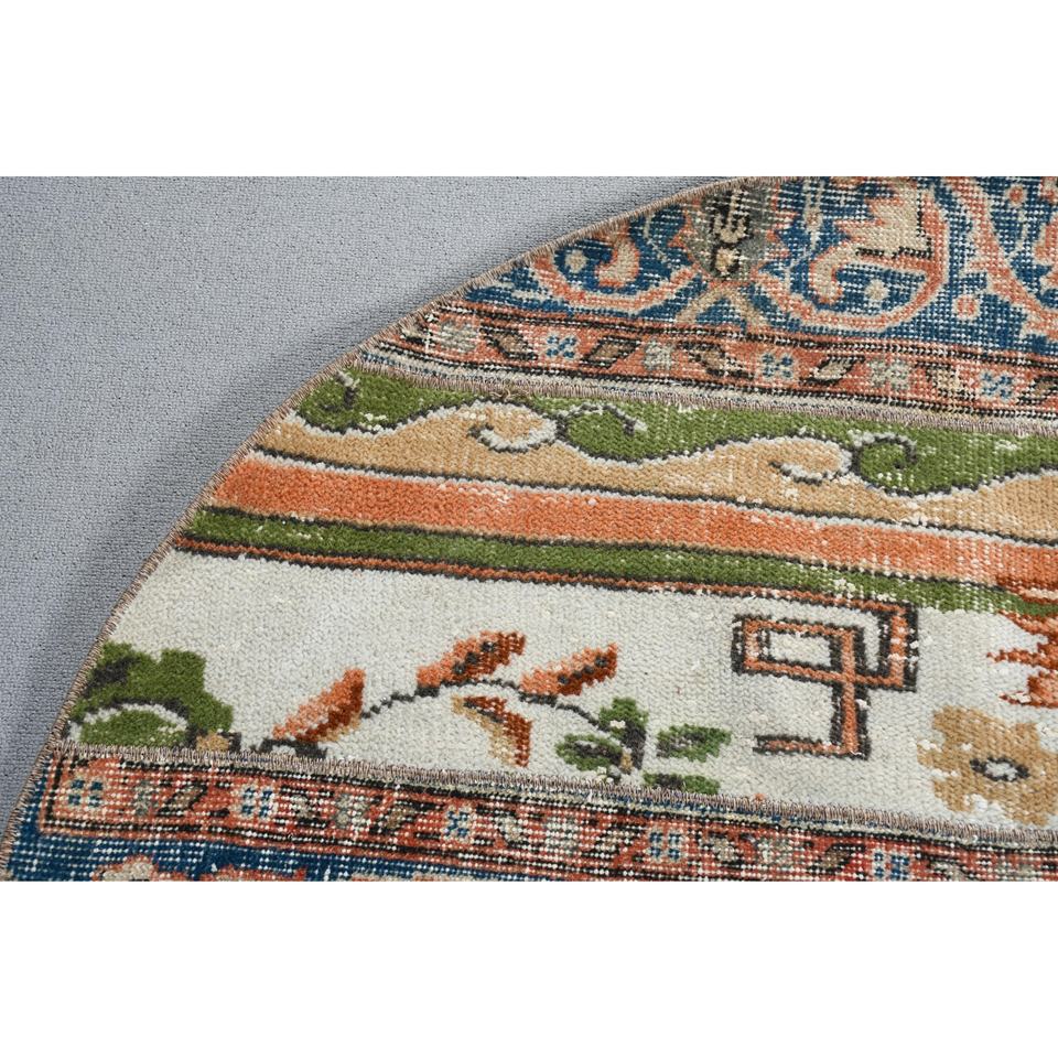 Alfombra redonda vintage de 3,6x3,7 pies (111x114 cm), alfombra turca azul con lunares