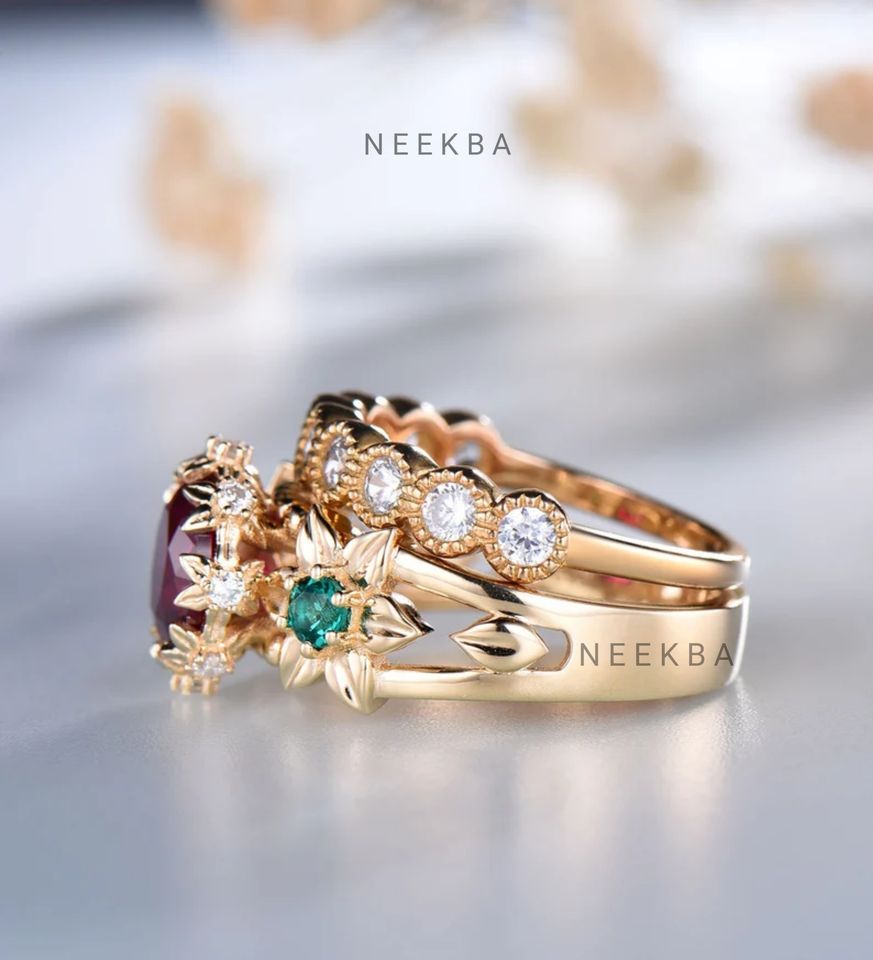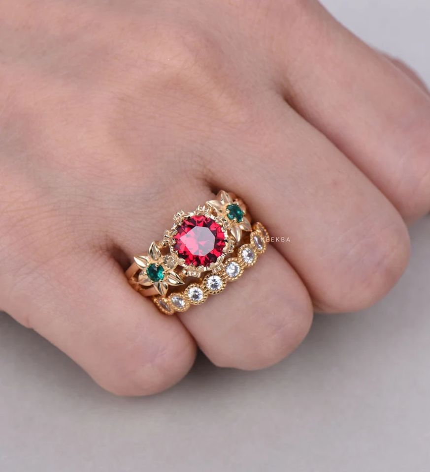 Conjunto de anillo de boda de RubíTipo de anillos