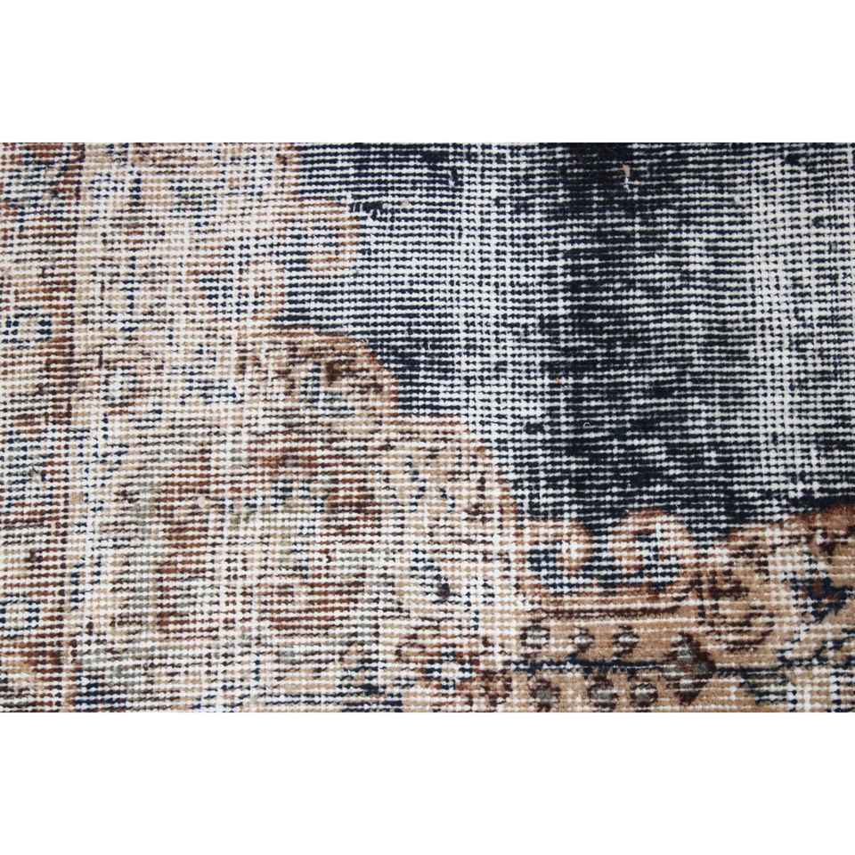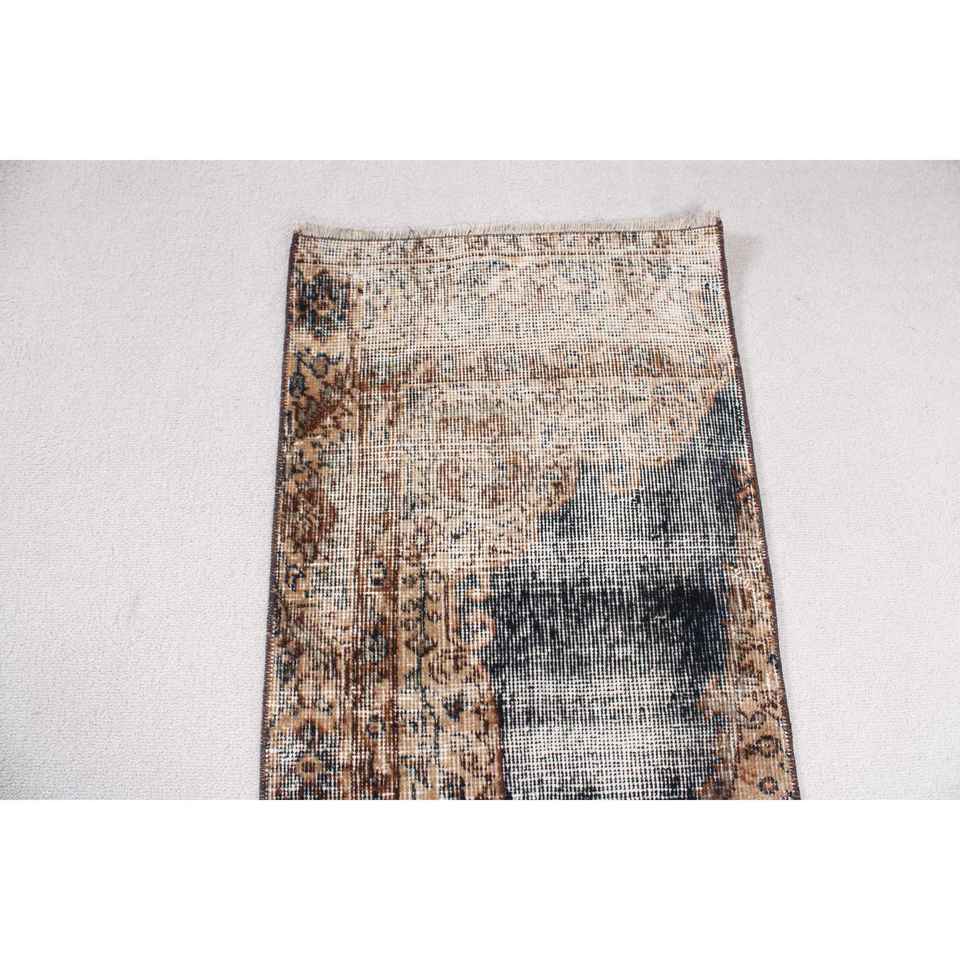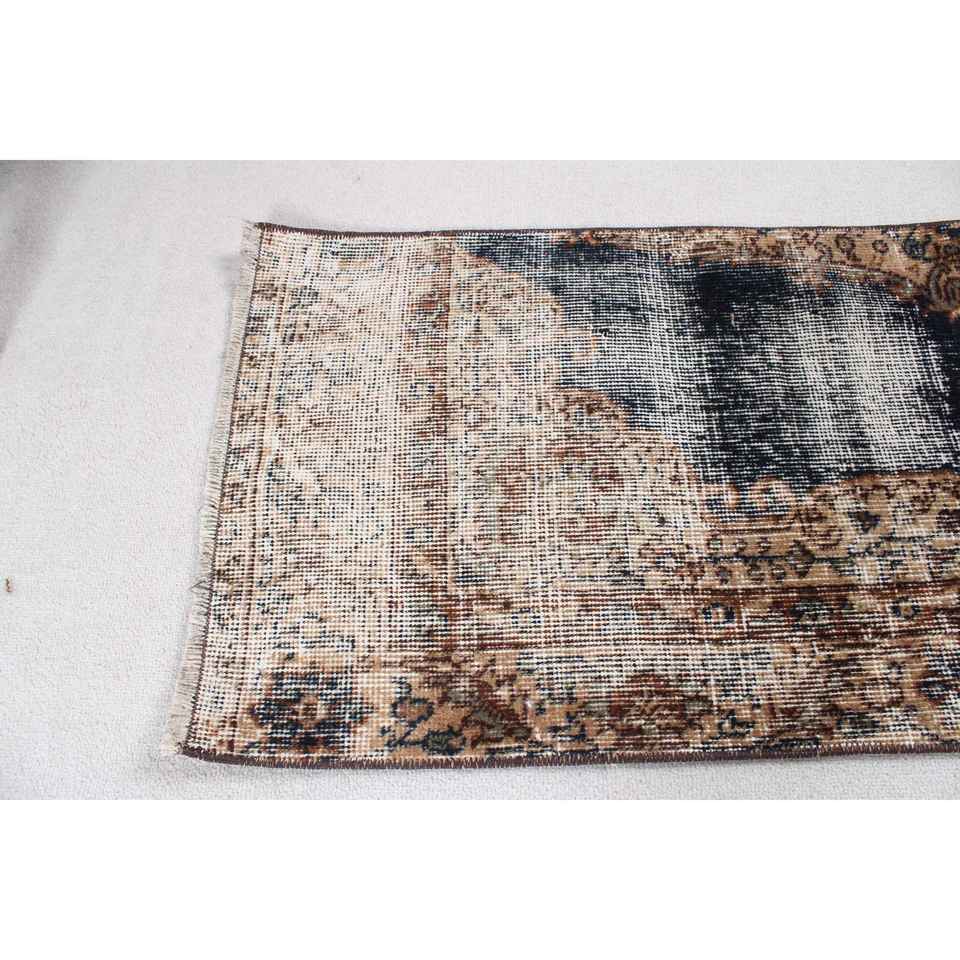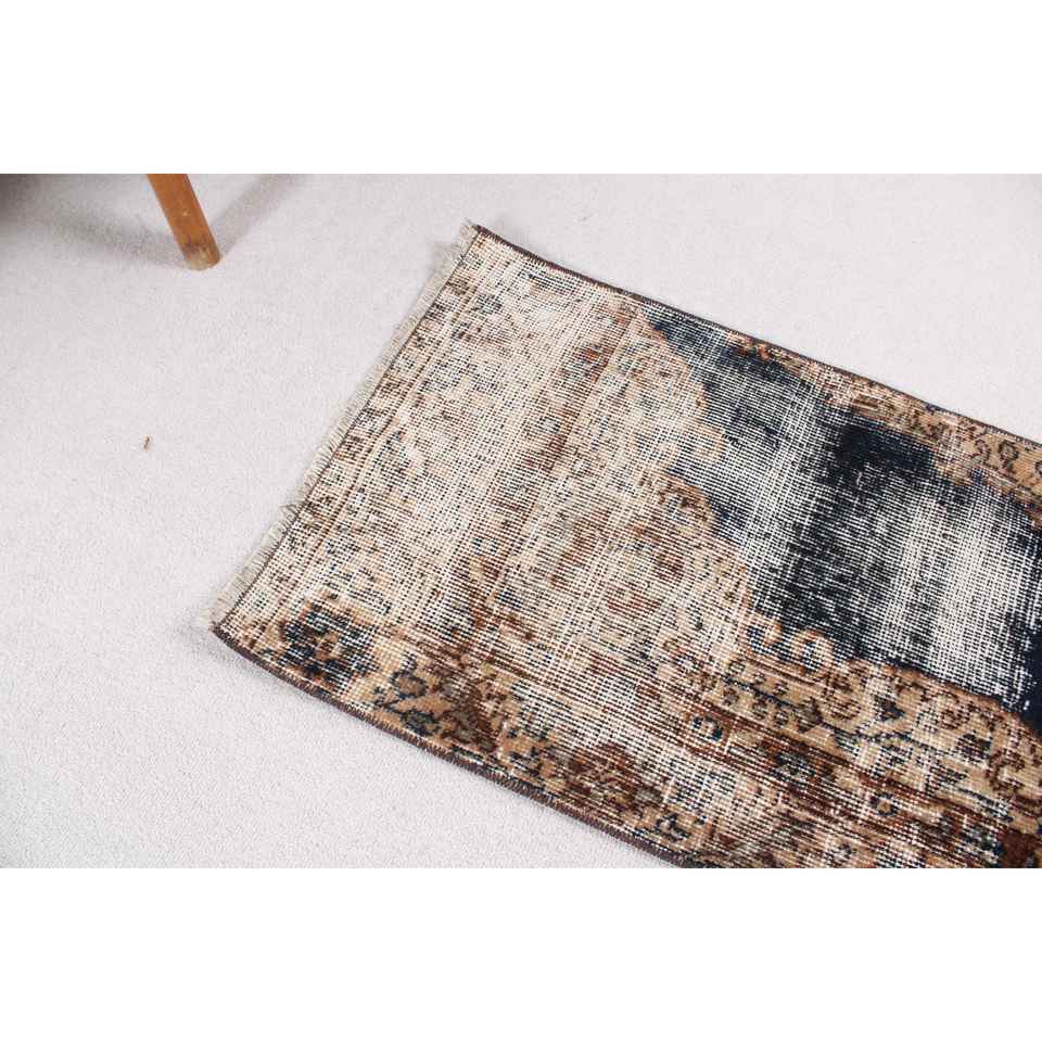 Alfombra Vintage de 1.6x2.4 pies, Alfombra Turca de Lana Sólida Marrón Azul