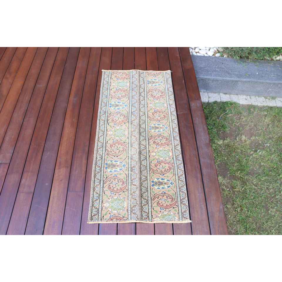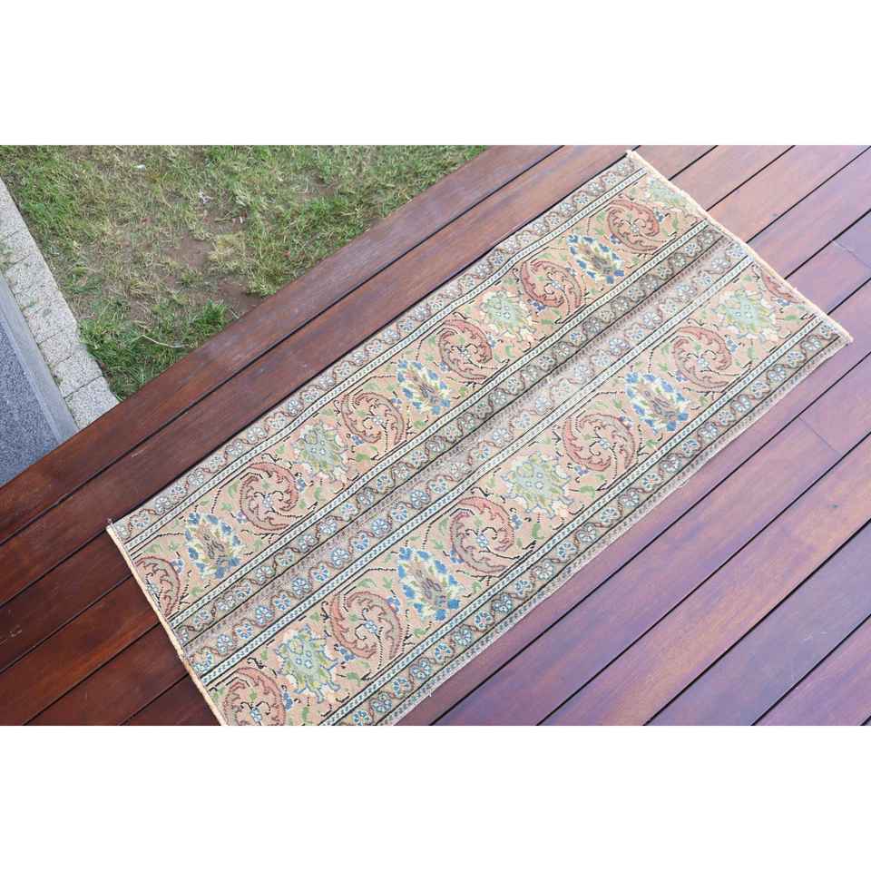 Alfombra Vintage, Alfombra Turca de 1.7x3.7 pies, Alfombra Persa Azul de Lana