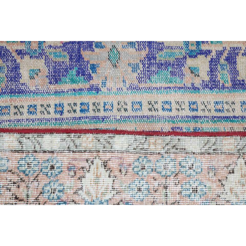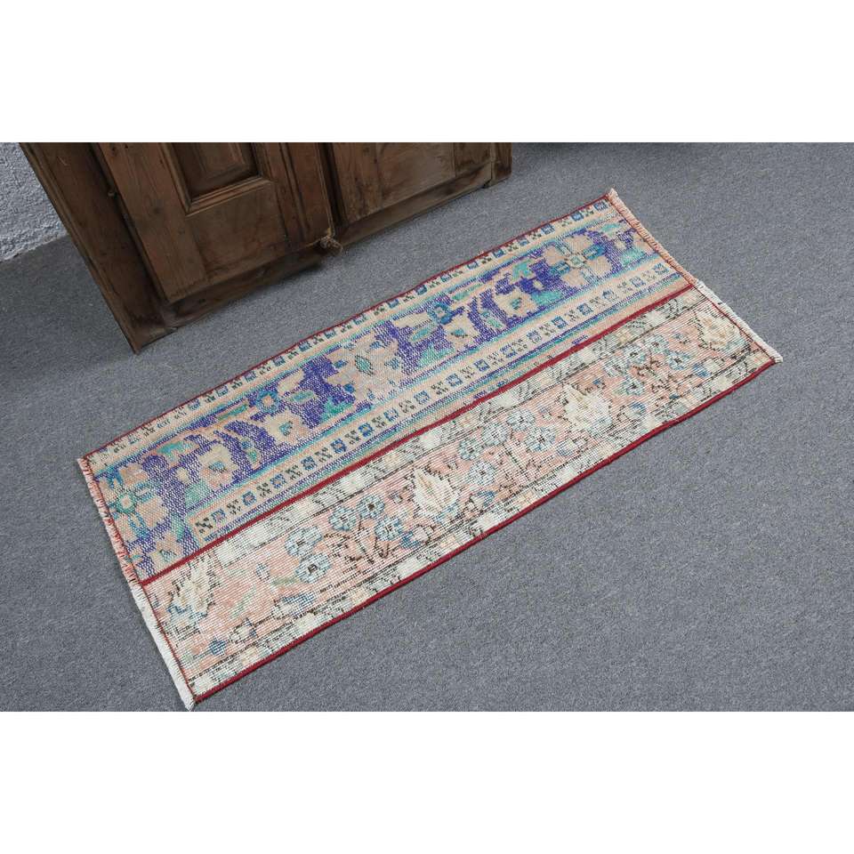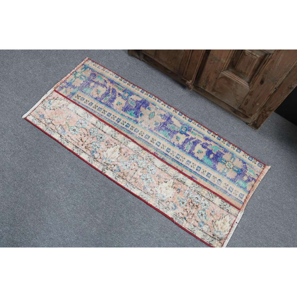 Alfombra Vintage, Alfombra Pequeña de 1.7x3.7 pies, Alfombra de Lana Azul y Roja