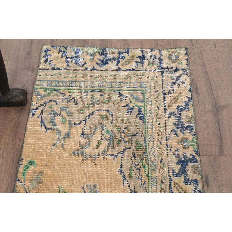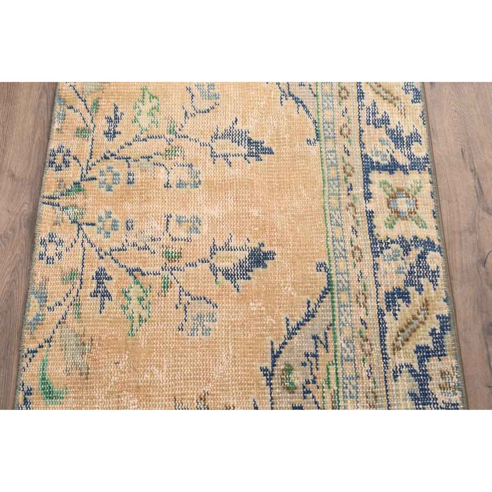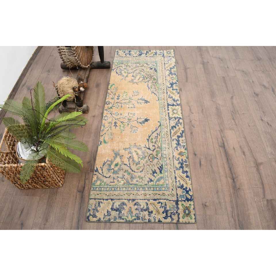 Alfombra Vintage, Alfombra de Pasillo de 2.1x5.9 pies, Alfombra Turca de Lana Azul Ombré