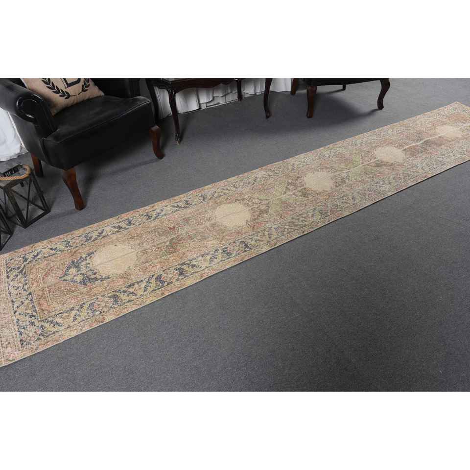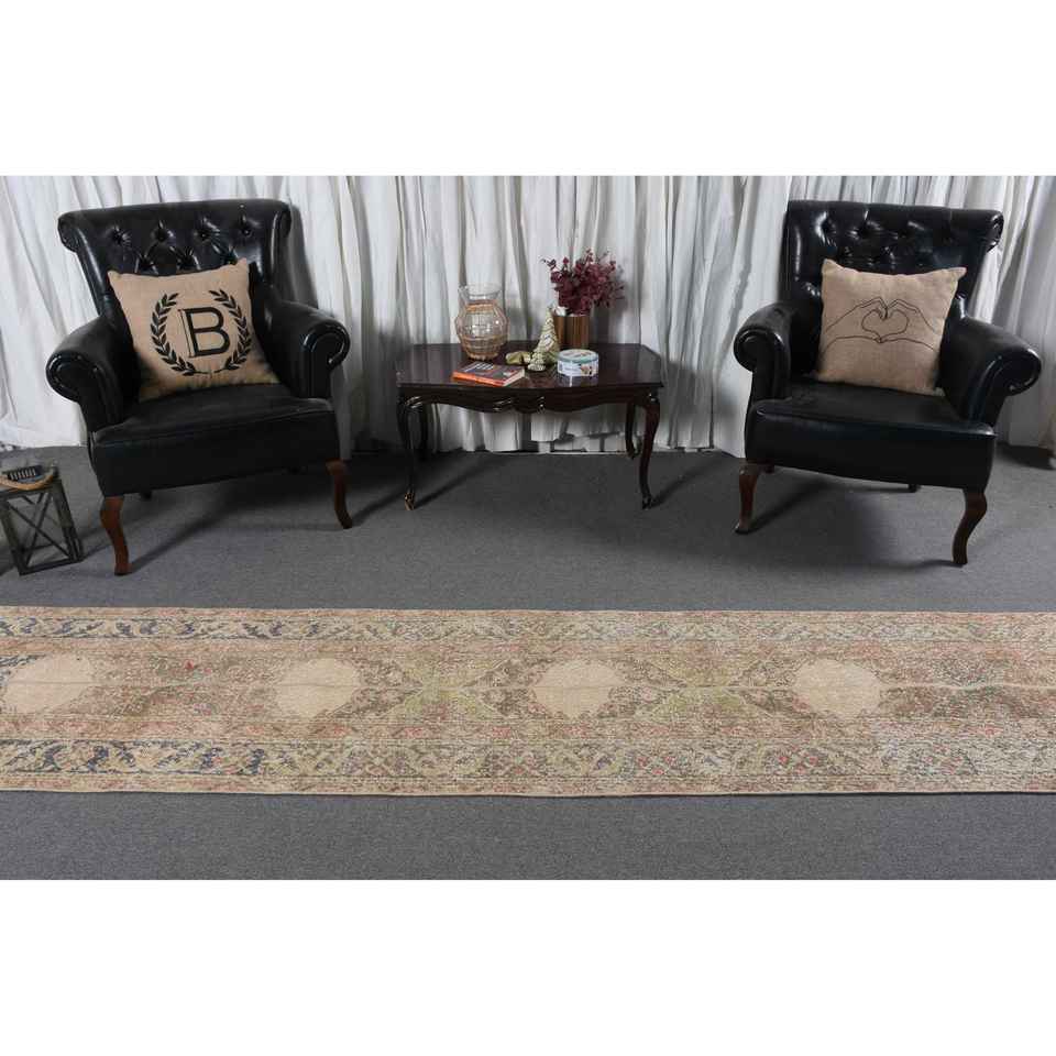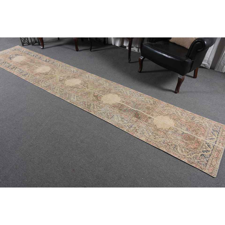 Alfombra Vintage, Alfombra Turca de 2.2x12.3 pies, Alfombra de Lana Marrón Rojiza