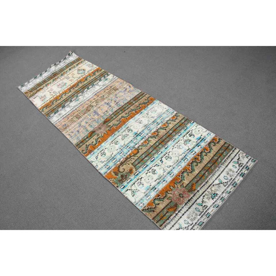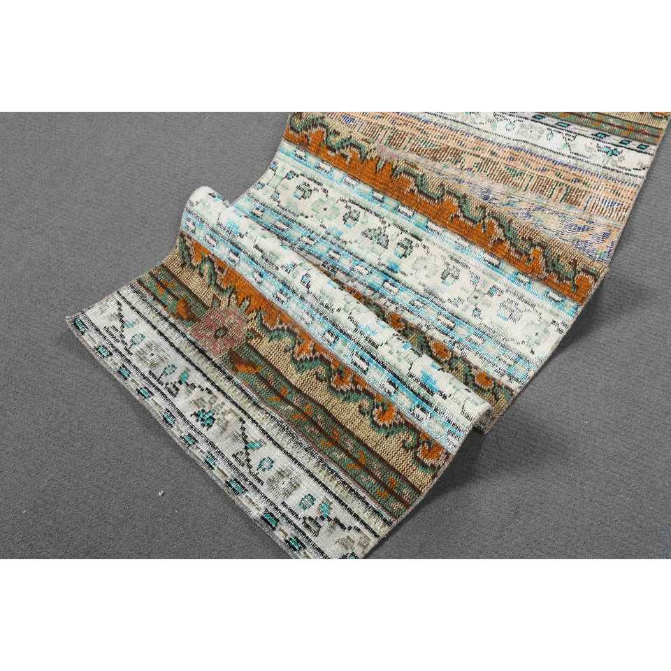 Alfombra Vintage de 2.3x6.8 pies (69x206 cm), Alfombra Turca Floral Marrón