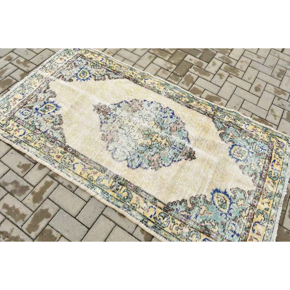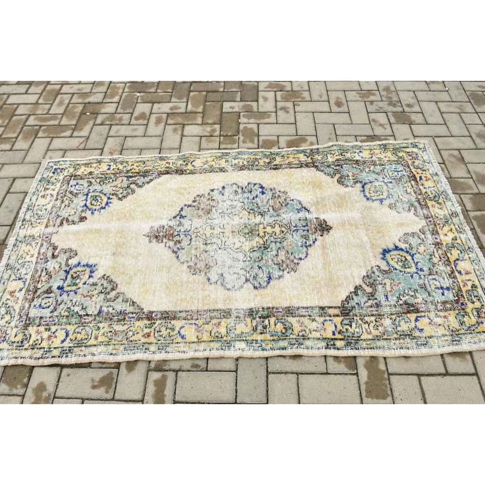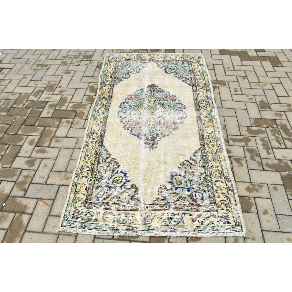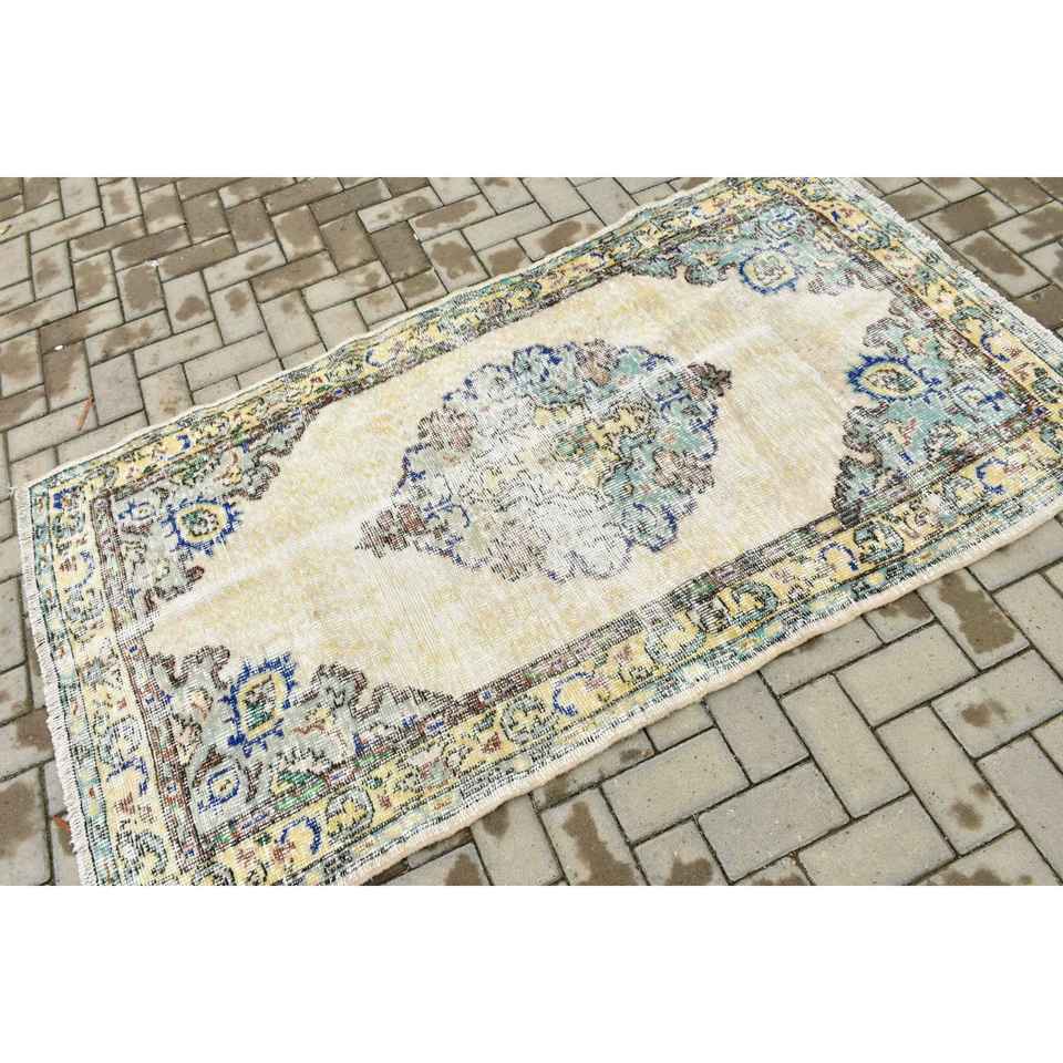 Alfombra Vintage, Alfombra Decorativa de 3.4x6.4 pies, Alfombra de Lana Azul y Amarilla