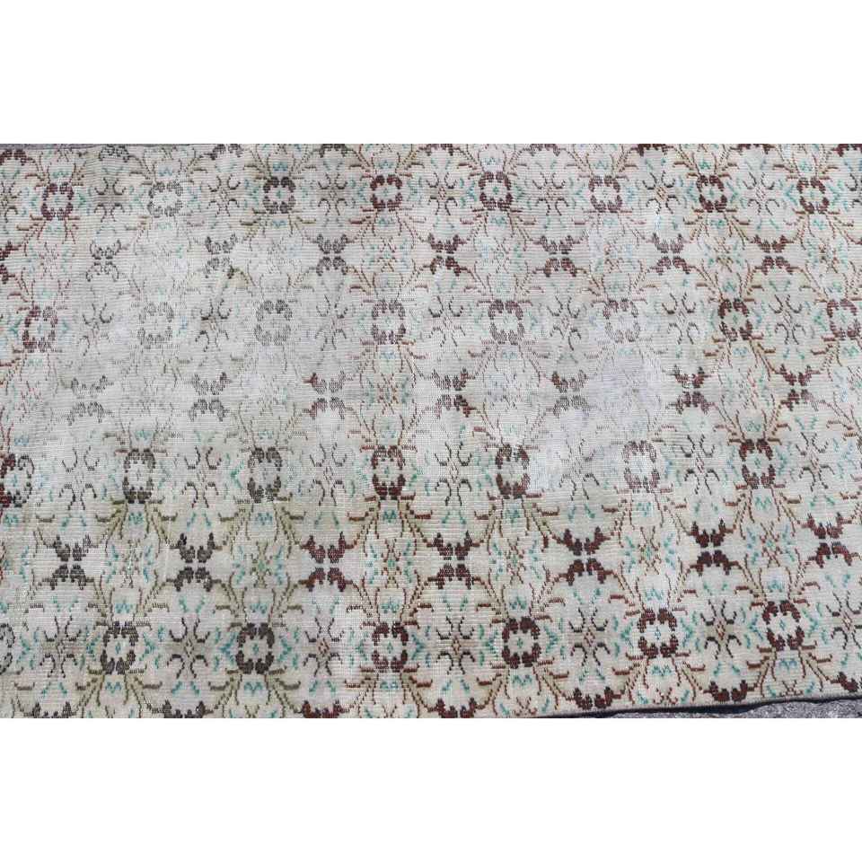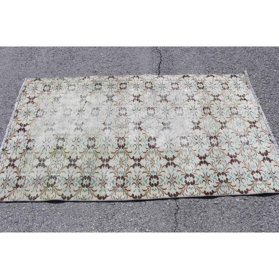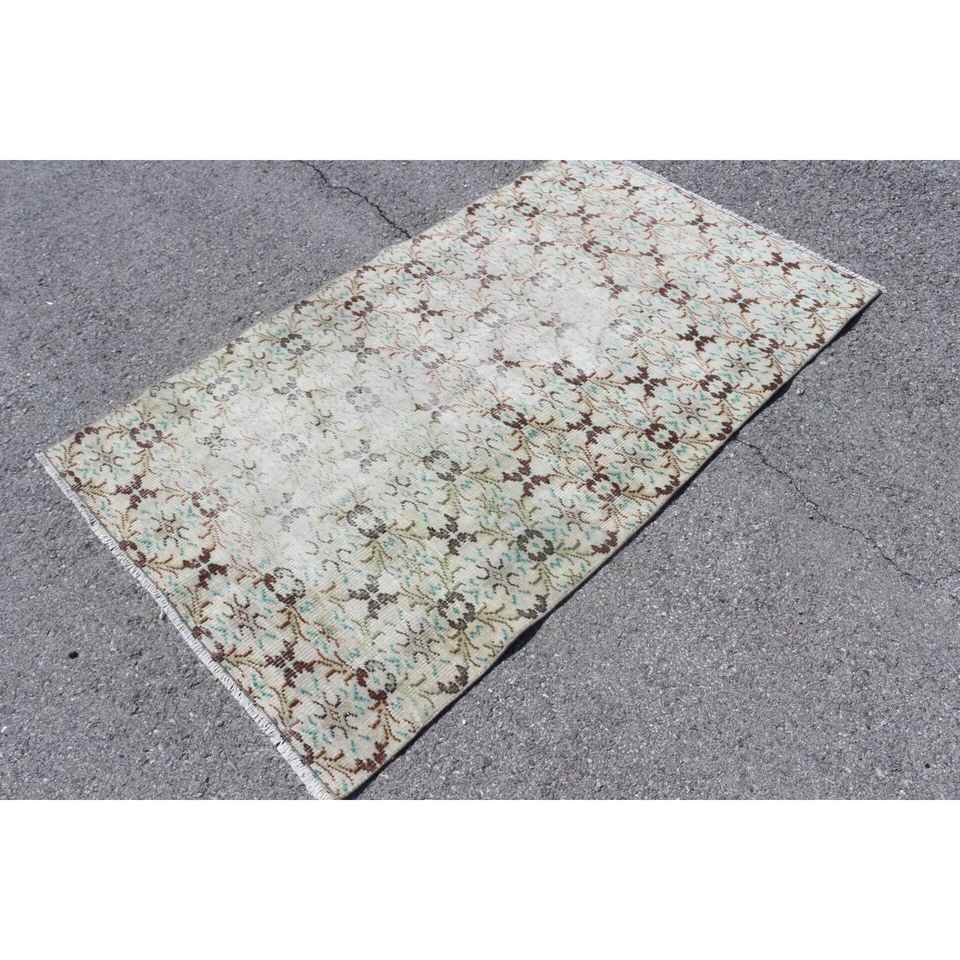 Alfombra Vintage, Alfombra Turca Decorativa de 3.6x6.3 pies, Alfombra Floral Marrón y Verde