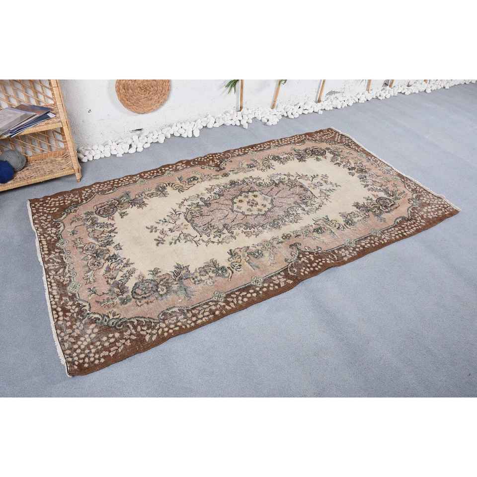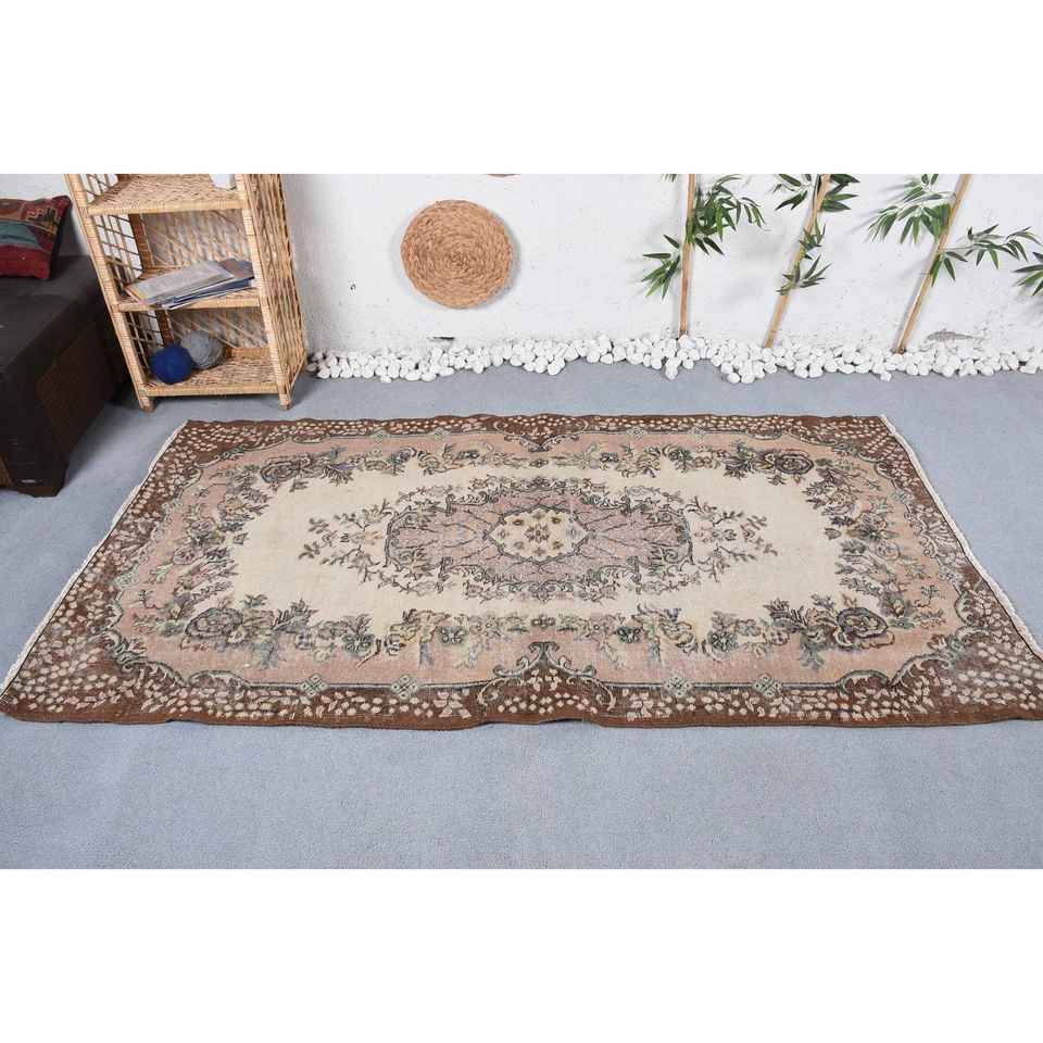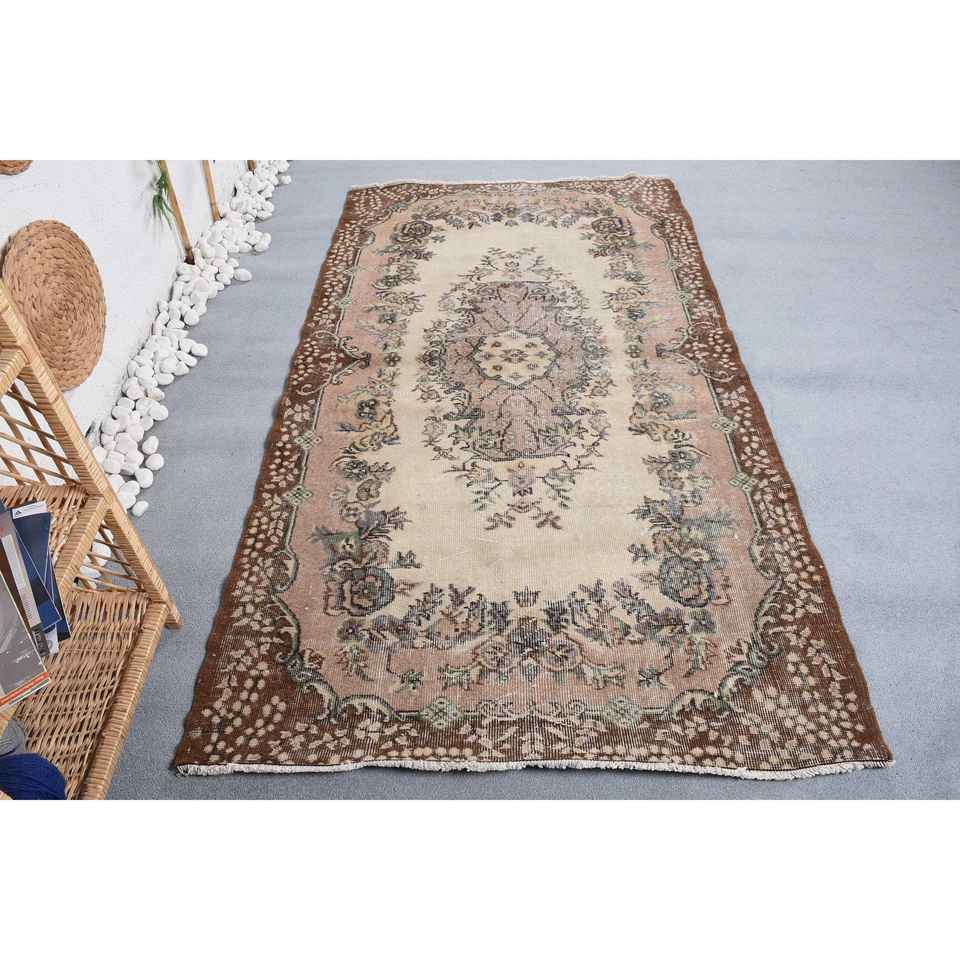 Alfombra Vintage, Alfombra de Lana Marrón Beige de 3,9x7,2 pies