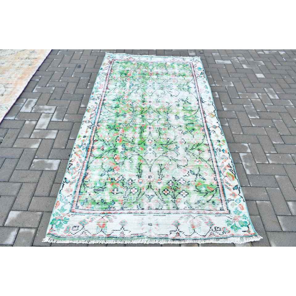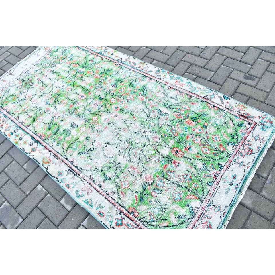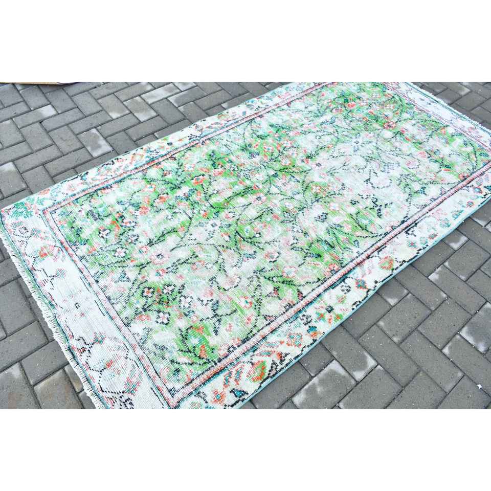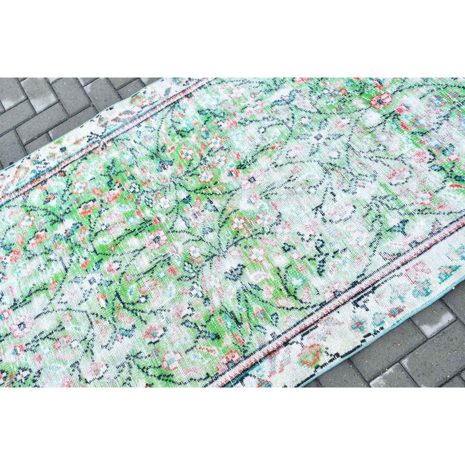 Alfombra vintage de 3.9x7.3 pies (119x222 cm), alfombra turca con motivos de plantas y árboles verdes