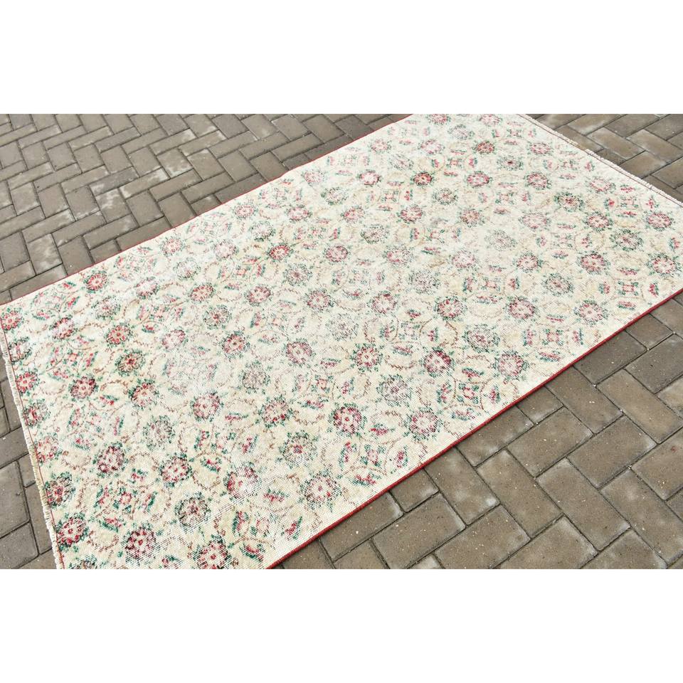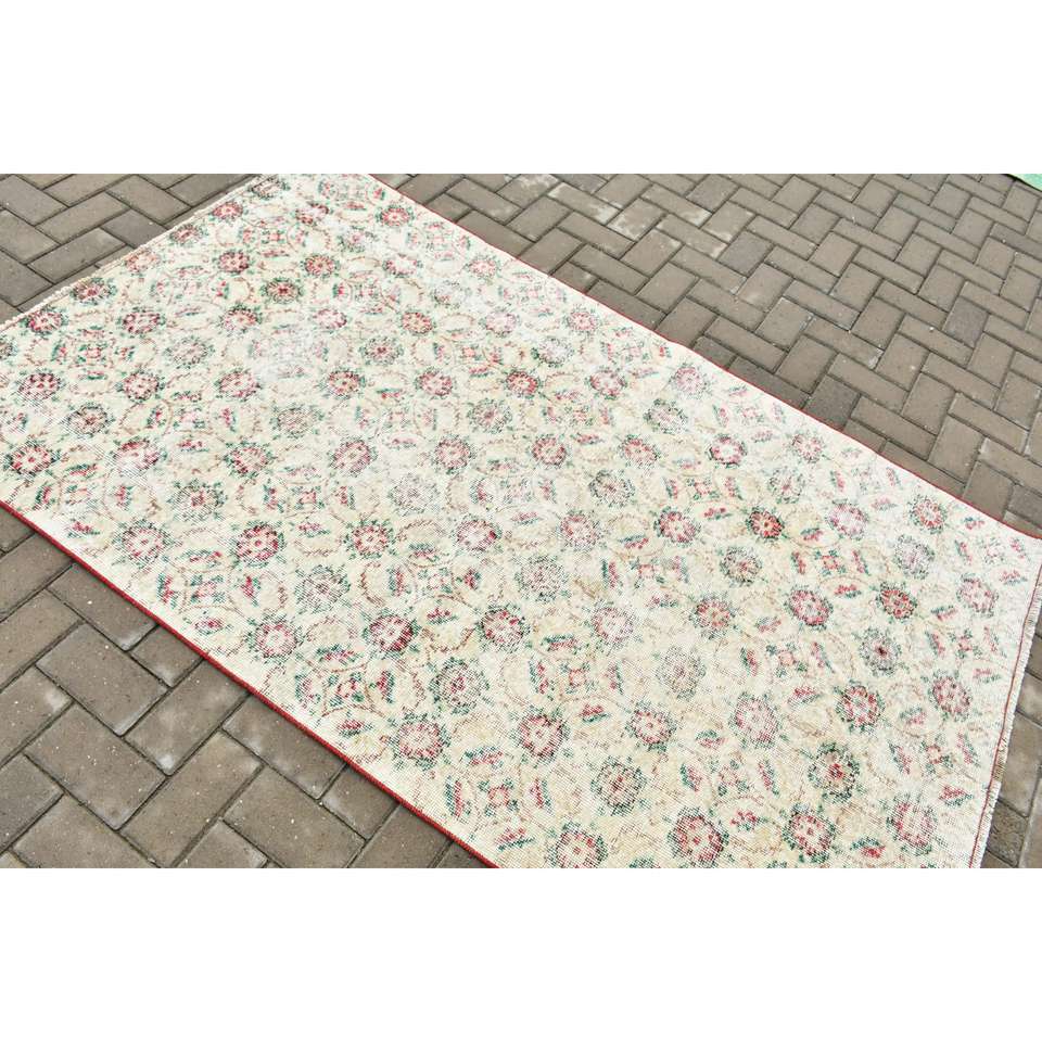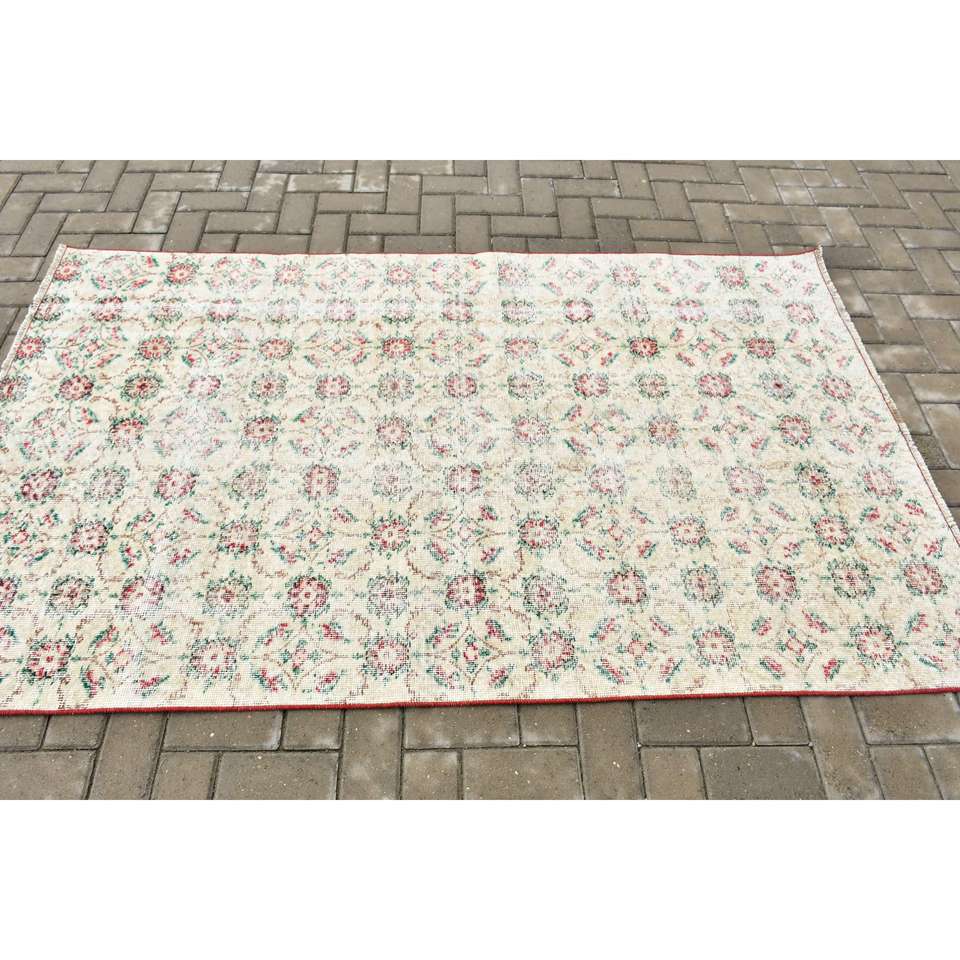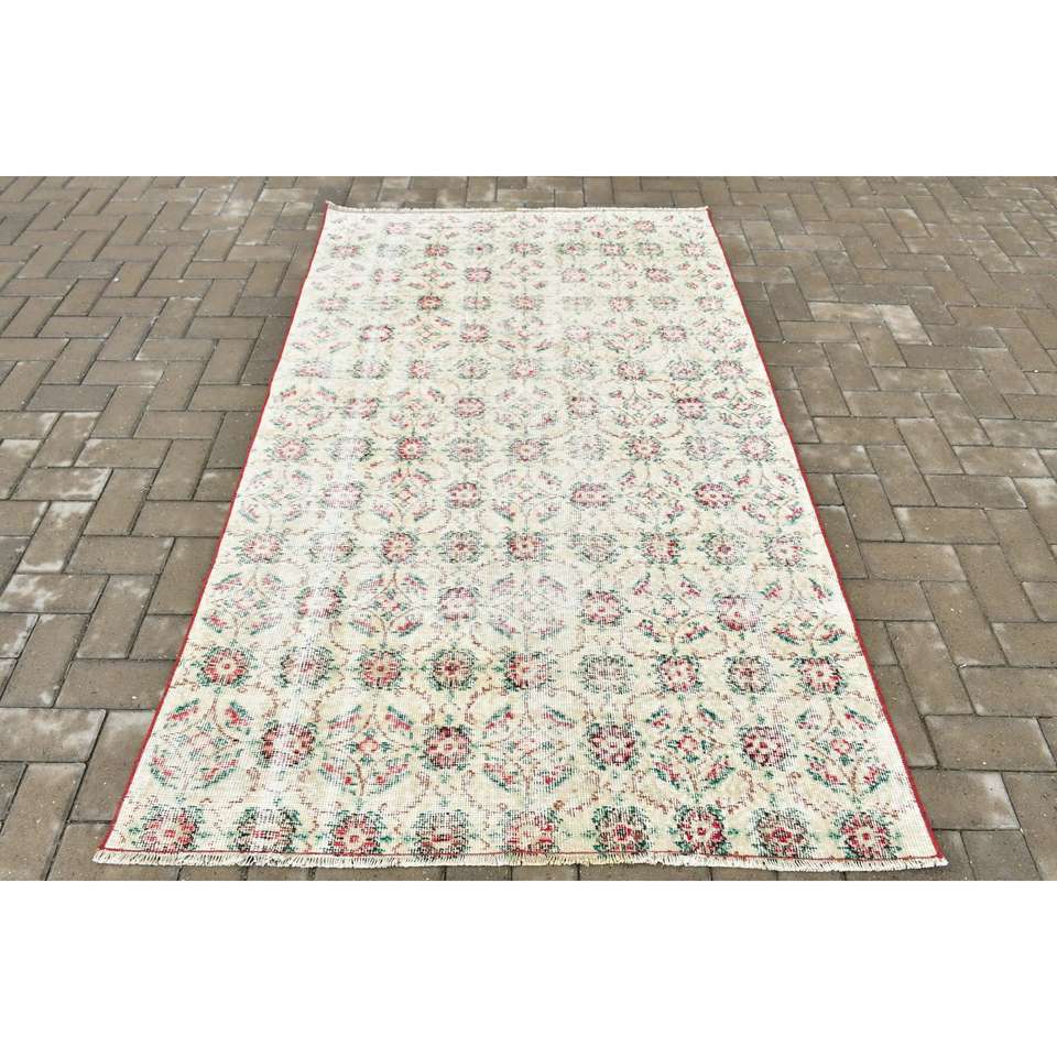 Alfombra Vintage, Alfombra de Lana Blanca y Roja de 4.2x7 pies