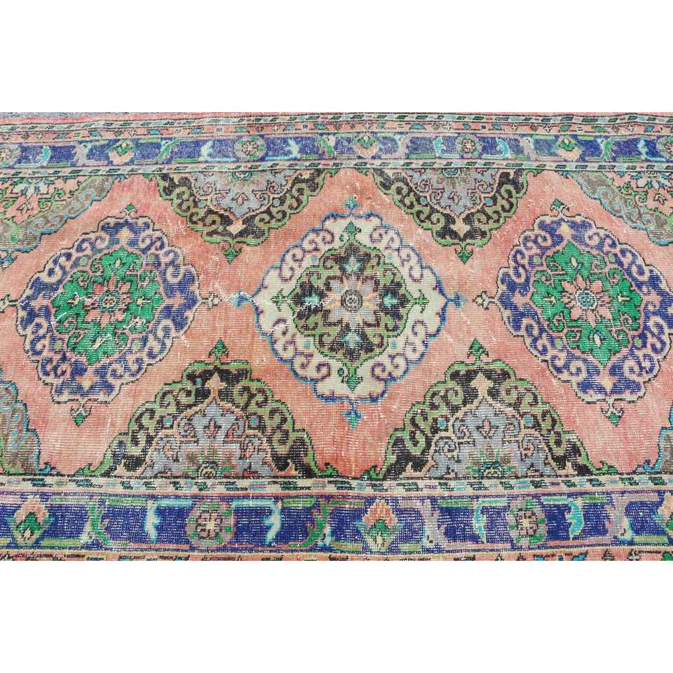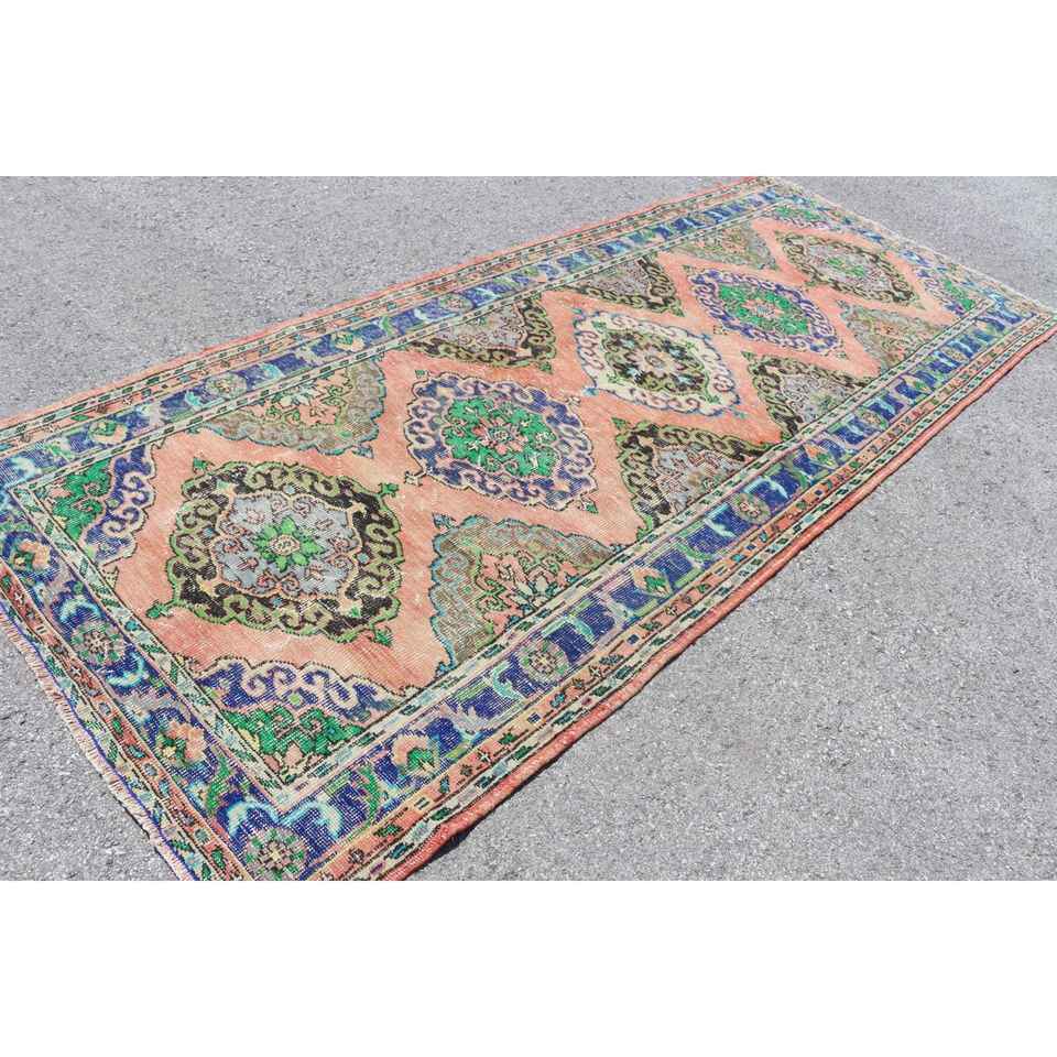 Alfombra vintage, alfombra grande de 4.7x11.7 pies, alfombra turca de lana con lunares azules