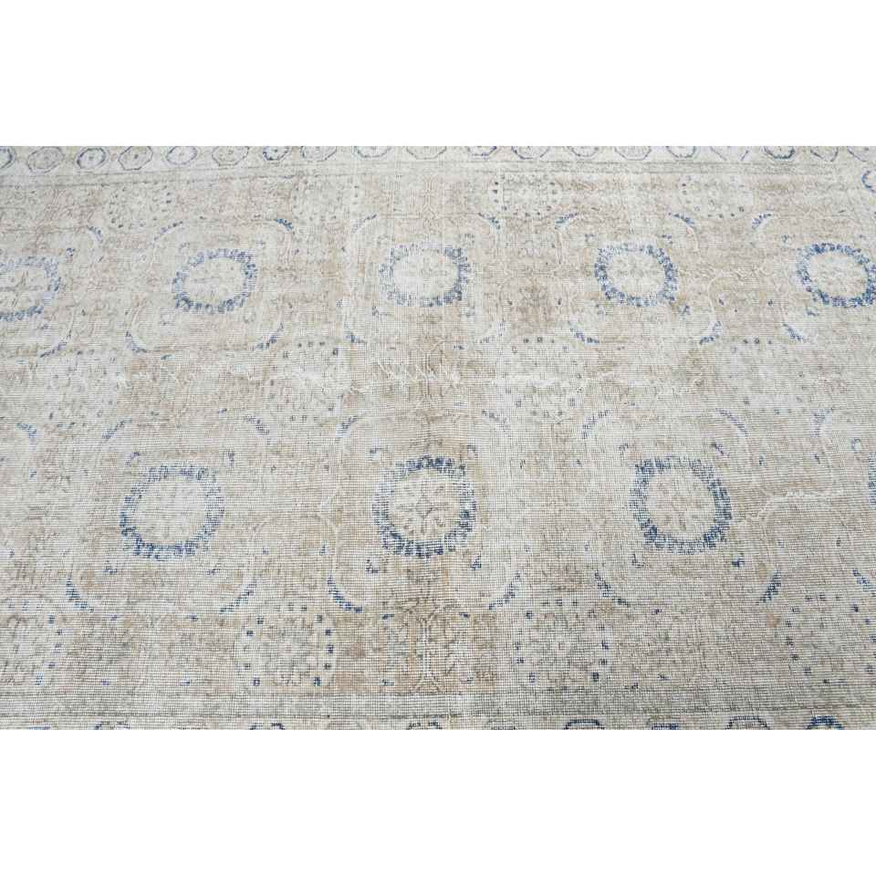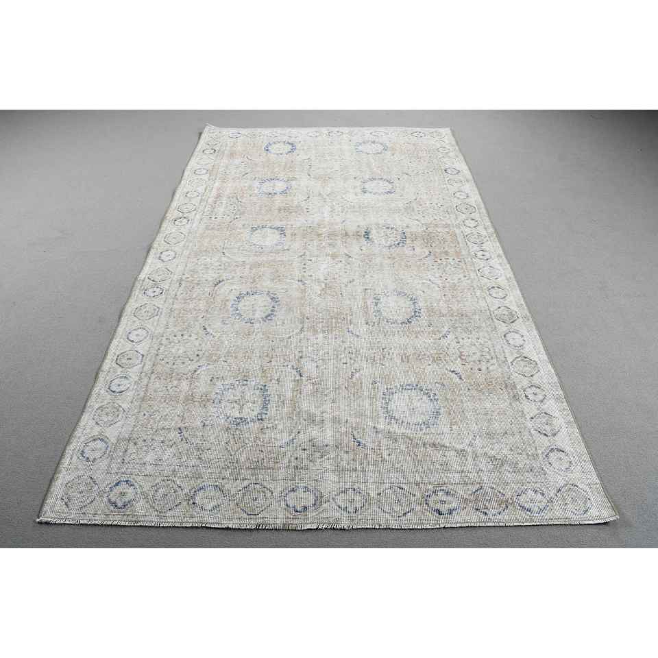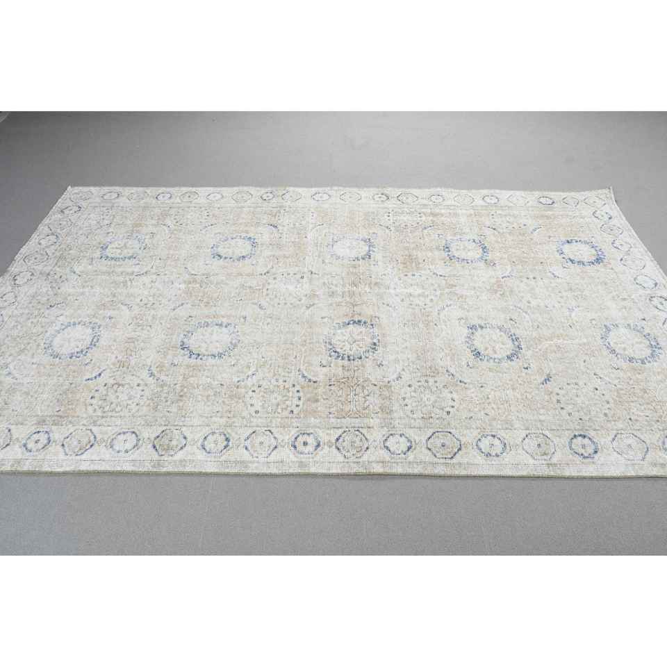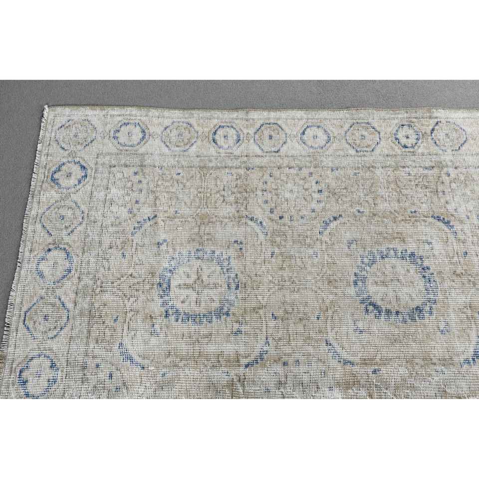 Alfombra Vintage, Alfombra Turca de 5,1x8,4 pies, Alfombra de Lana a Rayas Blancas y Azules