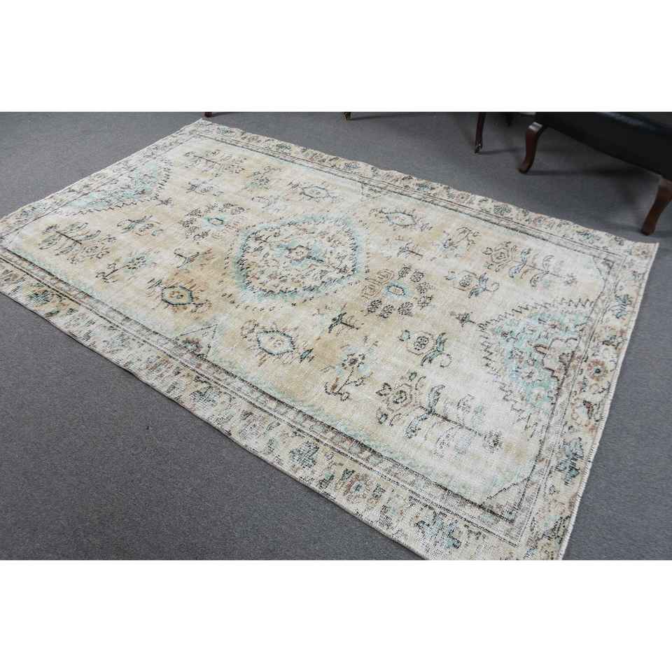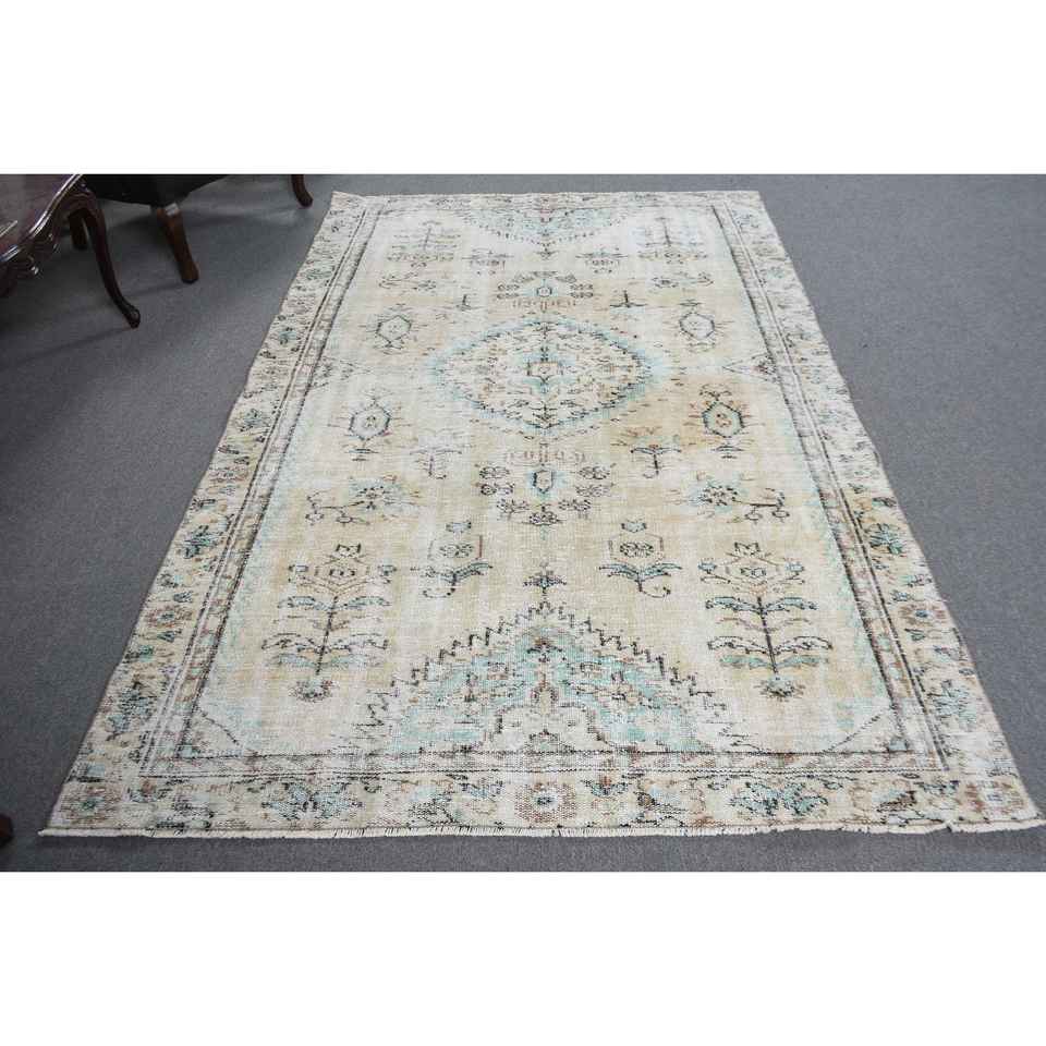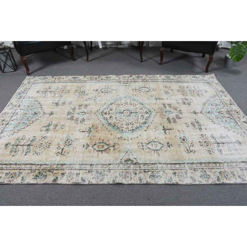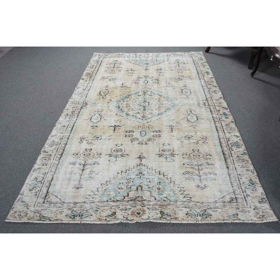 Alfombra vintage, alfombra grande de 5.3x8.3 pies, alfombra turca de lana con lunares blancos