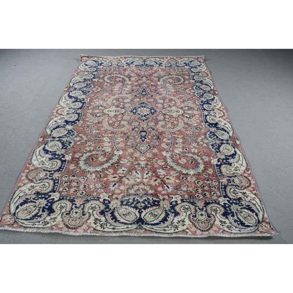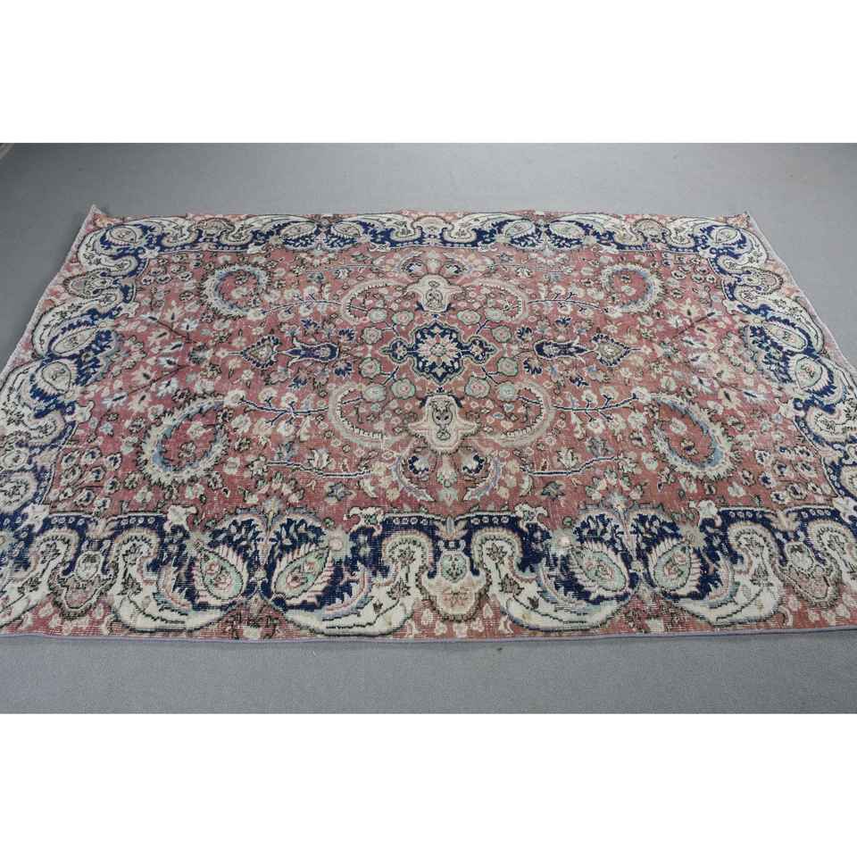 Alfombra Vintage, Alfombra Grande de 5,5x8 pies, Alfombra Turca Oriental Azul de Lana
