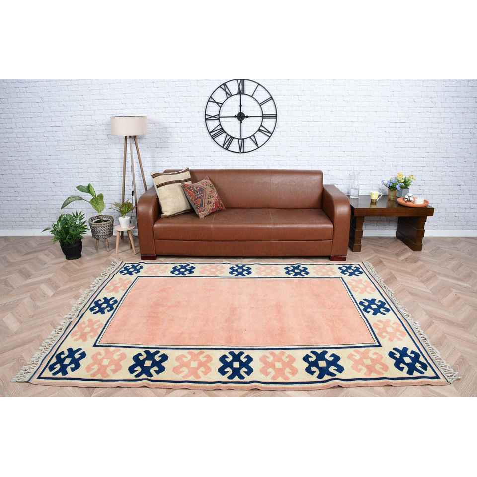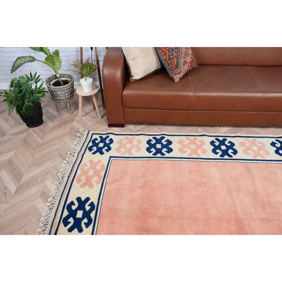 Alfombra Vintage, Alfombra Grande de 5.6x7.7 pies, Alfombra Turca de Lana con Camuflaje Azul