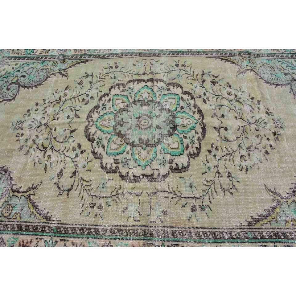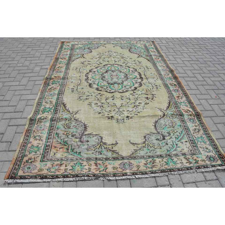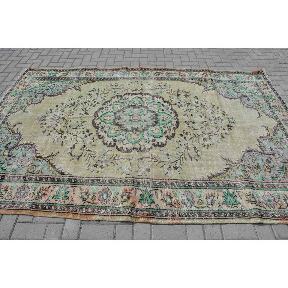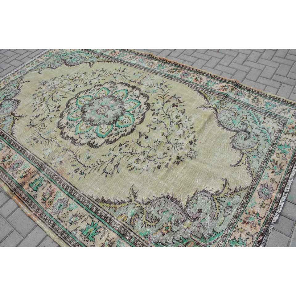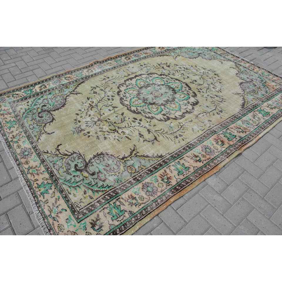Alfombra Vintage, Alfombra Grande de 6.1x9.2 pies, Alfombra de Lana Verde Marrón