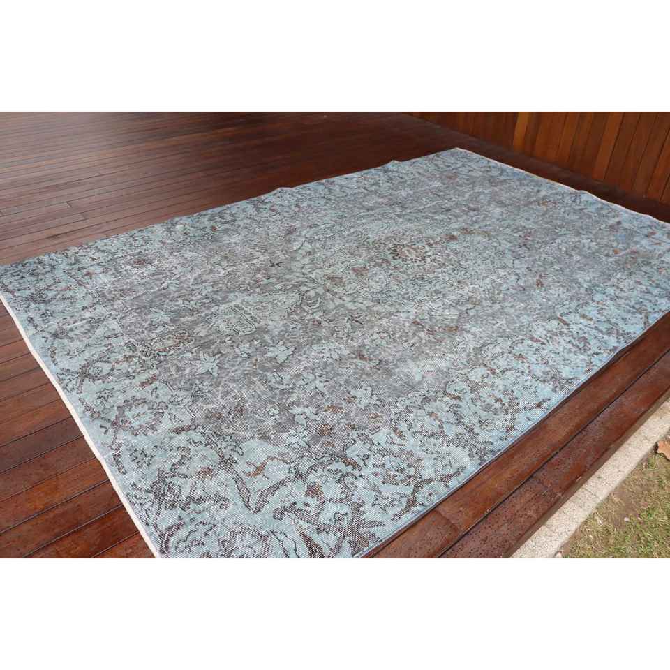 Alfombra vintage, alfombra turca de 6.1x9.7 pies, alfombra de lana azul con lunares