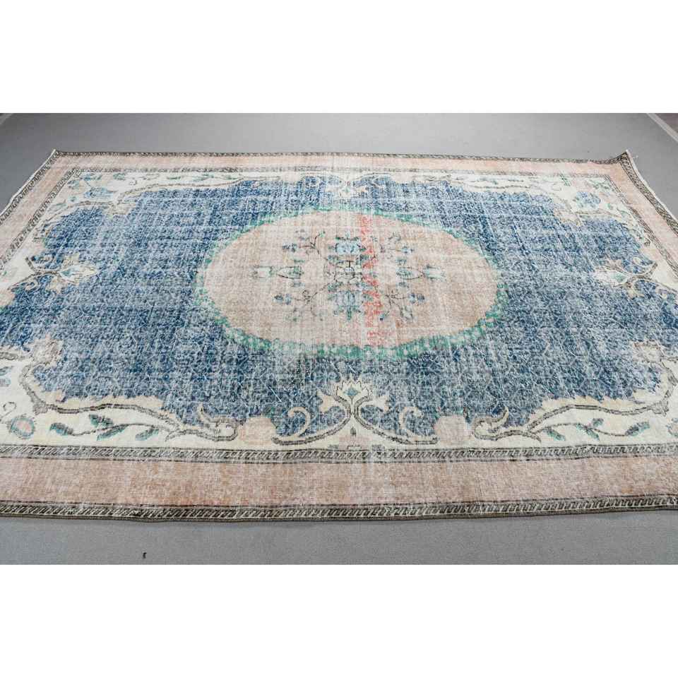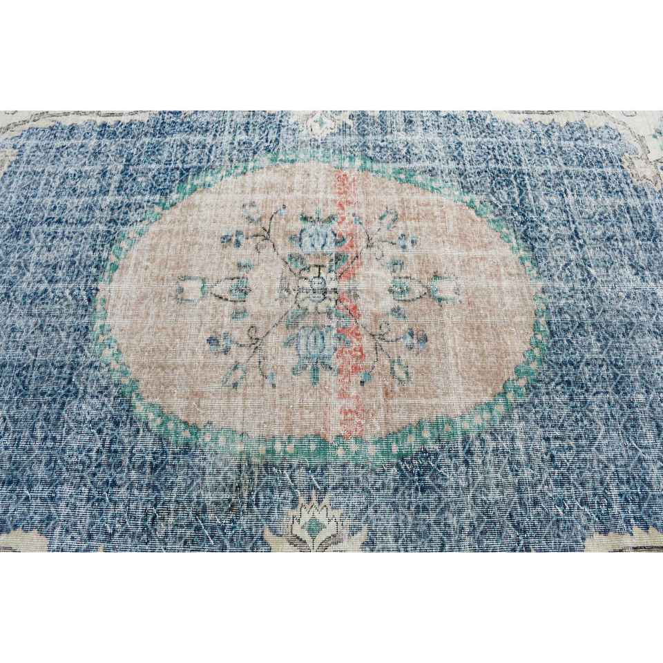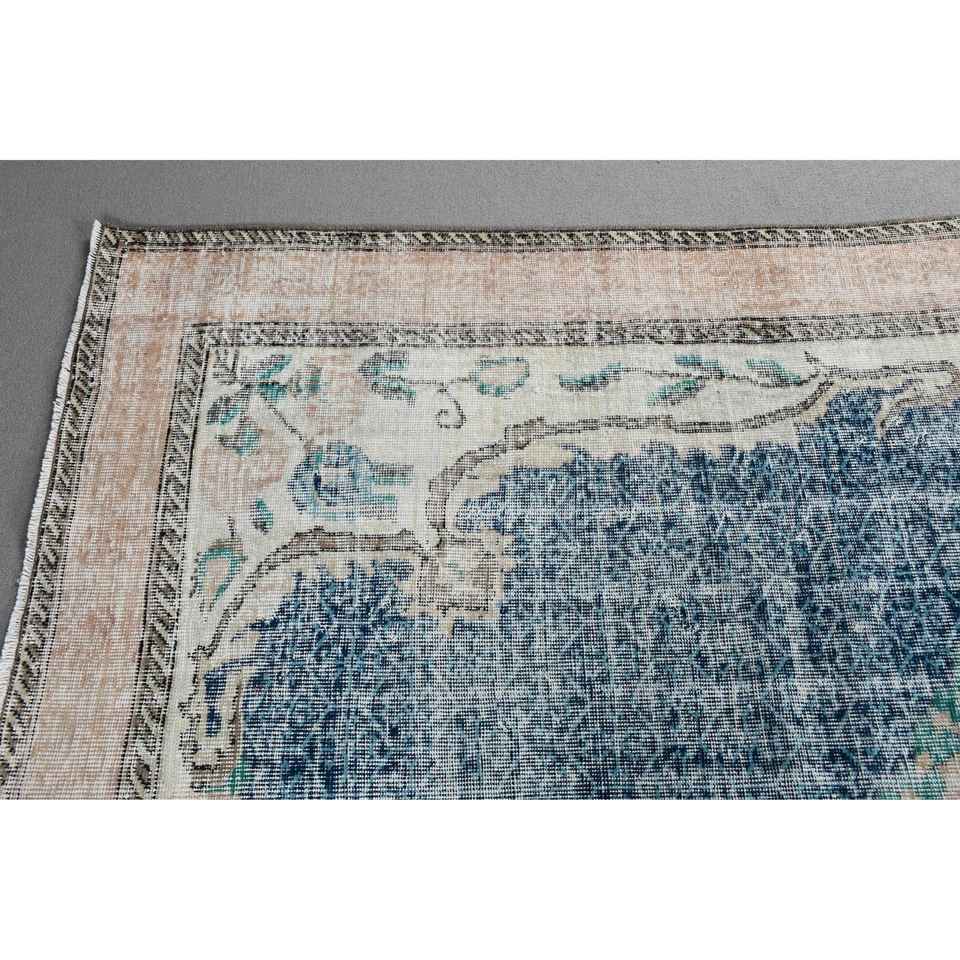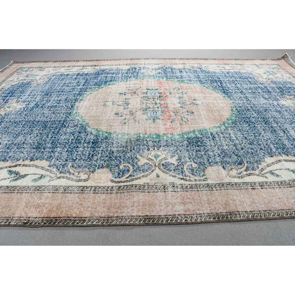 Alfombra Vintage, Alfombra Turca Extra Grande de 6,8x10,3 pies, Alfombra a Cuadros Azul y Blanca