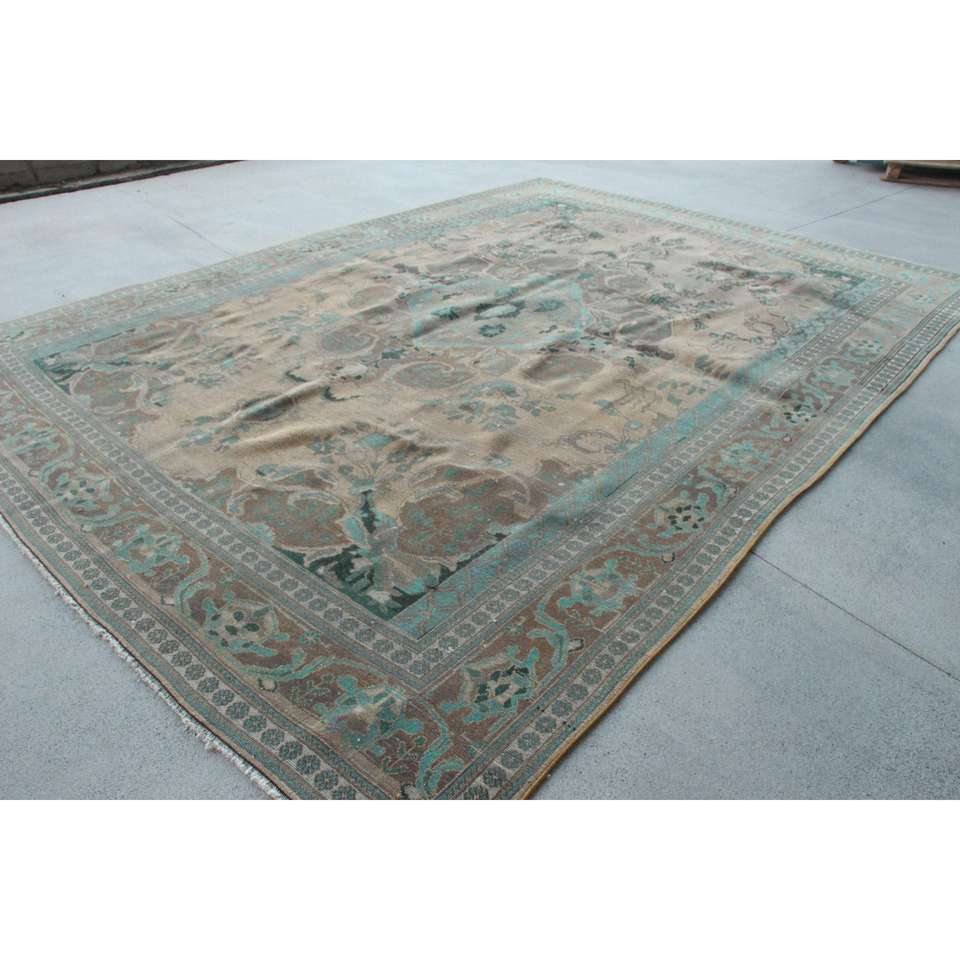 Alfombra Vintage, Alfombra Turca Extra Grande de 9.4x12.4 pies, Alfombra Ikat Azul Marrón