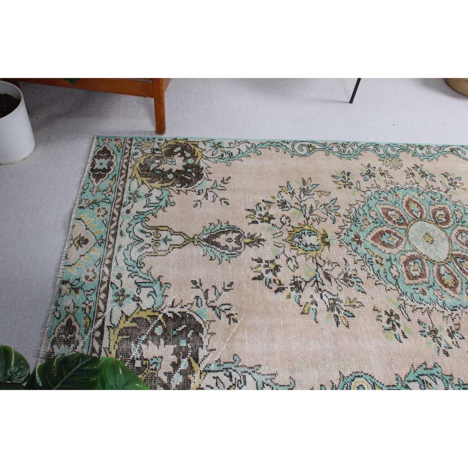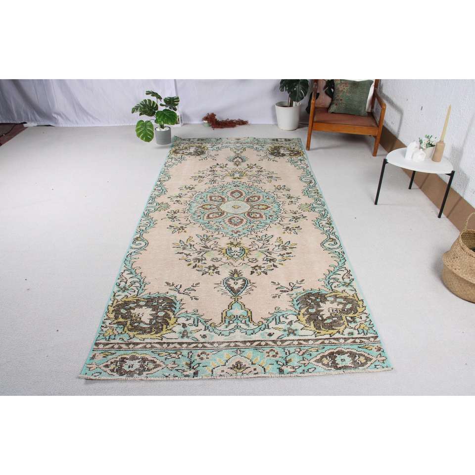 Alfombra Vintage, Alfombra Turca Grande de 4.2x9.6 pies, Alfombra de Lana Ikat Azul