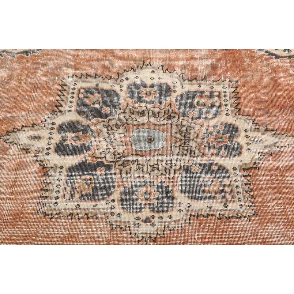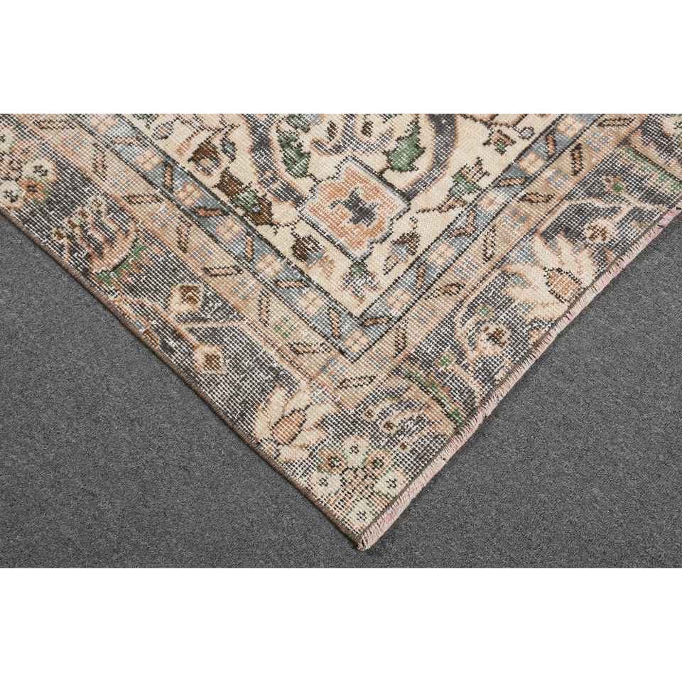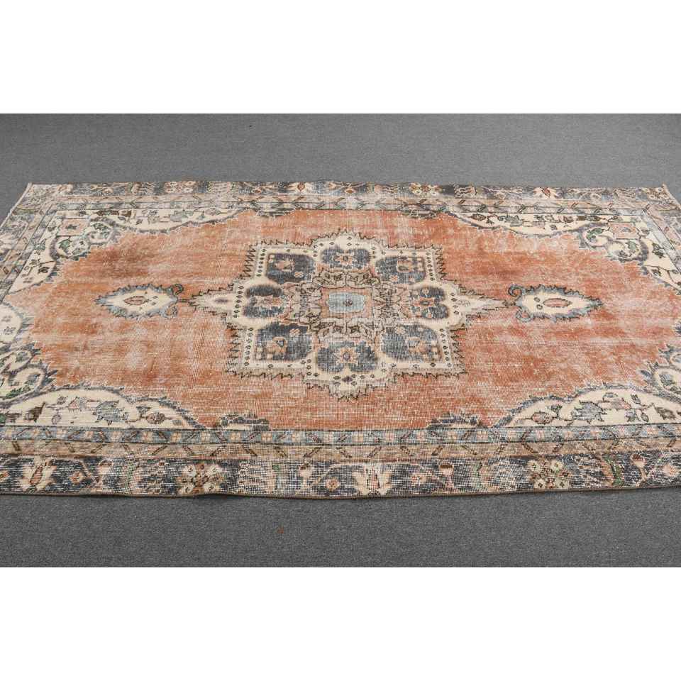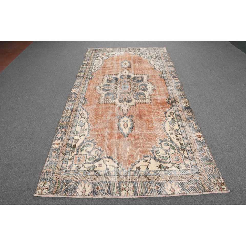 Alfombra Vintage, Alfombra Turca Grande de 4.5x9.2 pies, Alfombra de Lana a Rayas Marrón y Azul