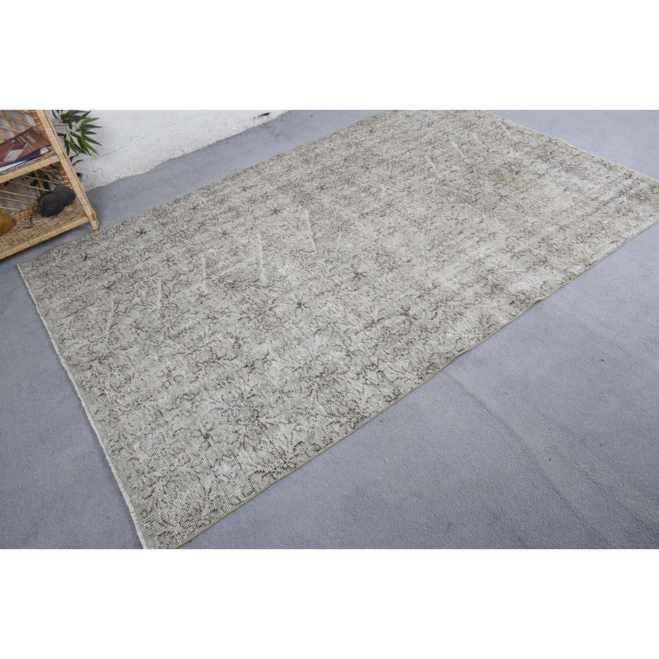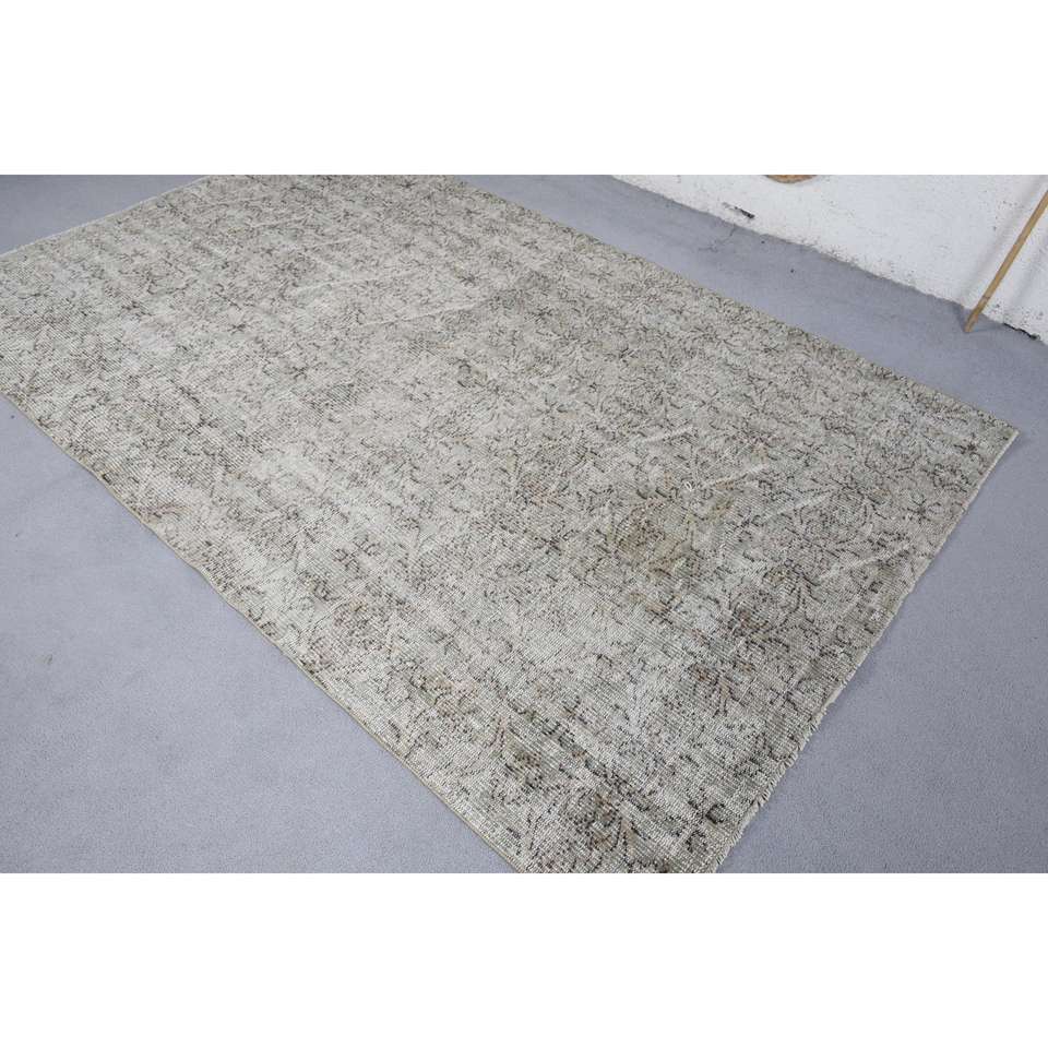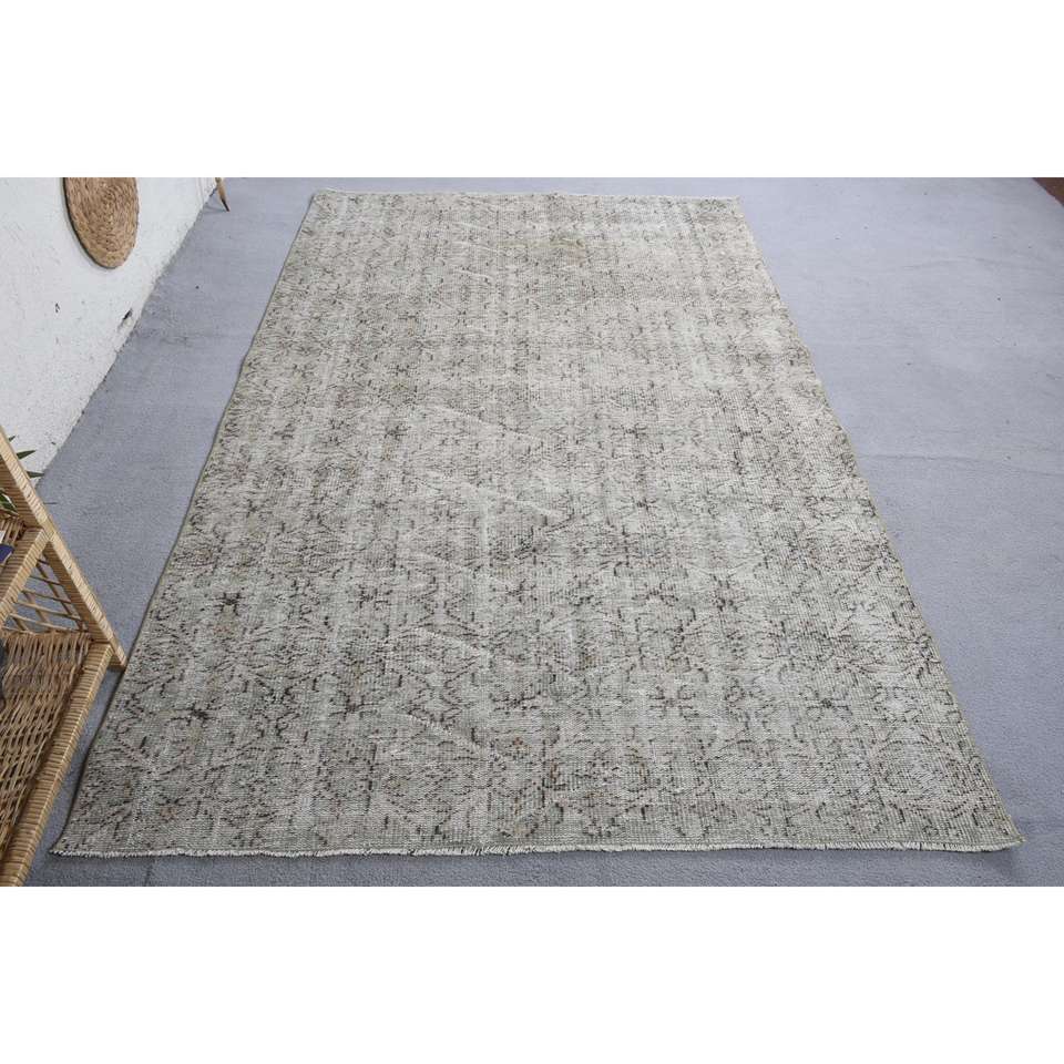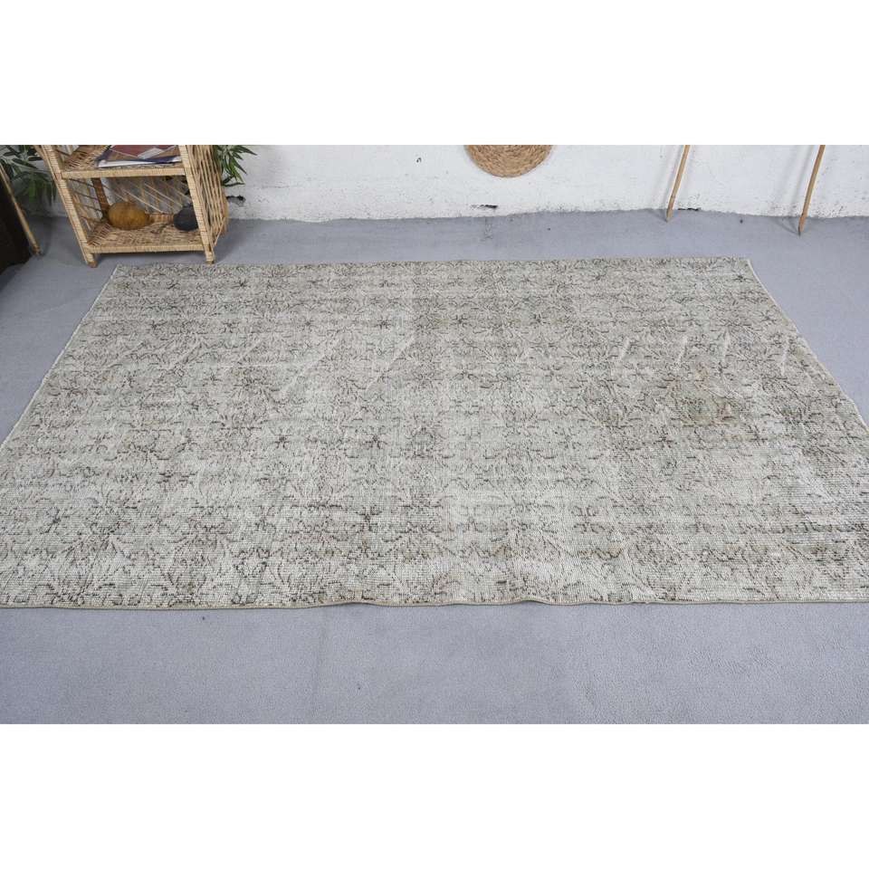 Alfombra Vintage, Alfombra Turca Grande de 5.1x8.1 pies, Alfombra Marroquí de Lana Gris Beige