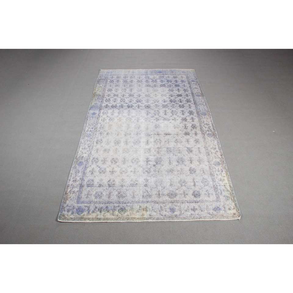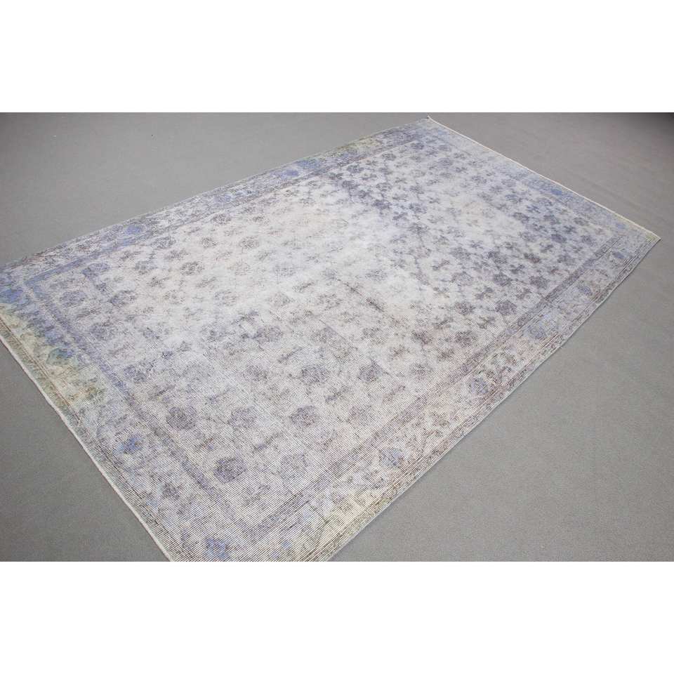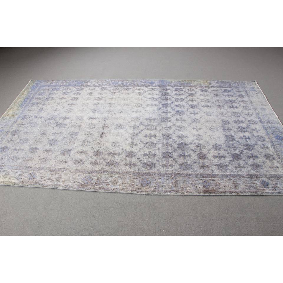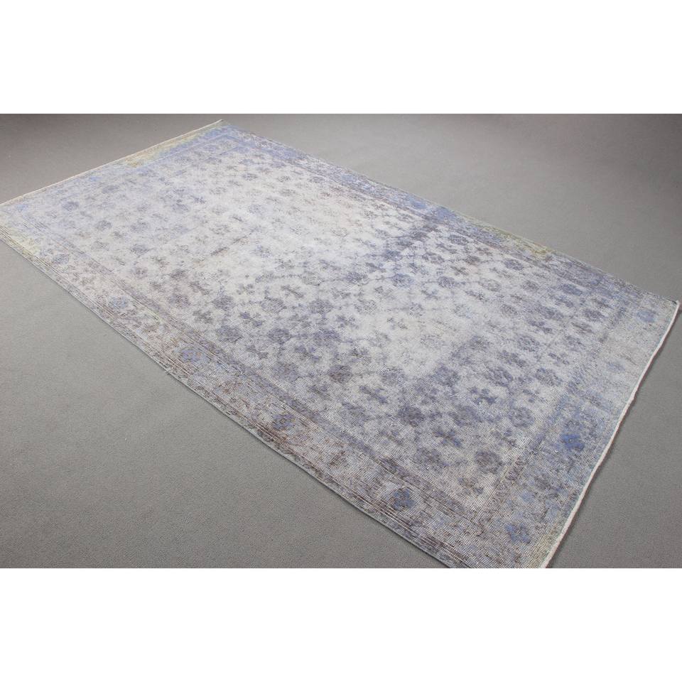Alfombra Vintage, Alfombra Turca Grande de 5.1x8.9 pies, Alfombra de Lana Azul con Diseño de Patchwork