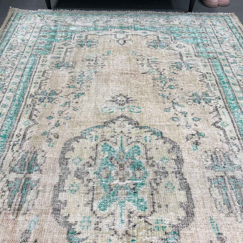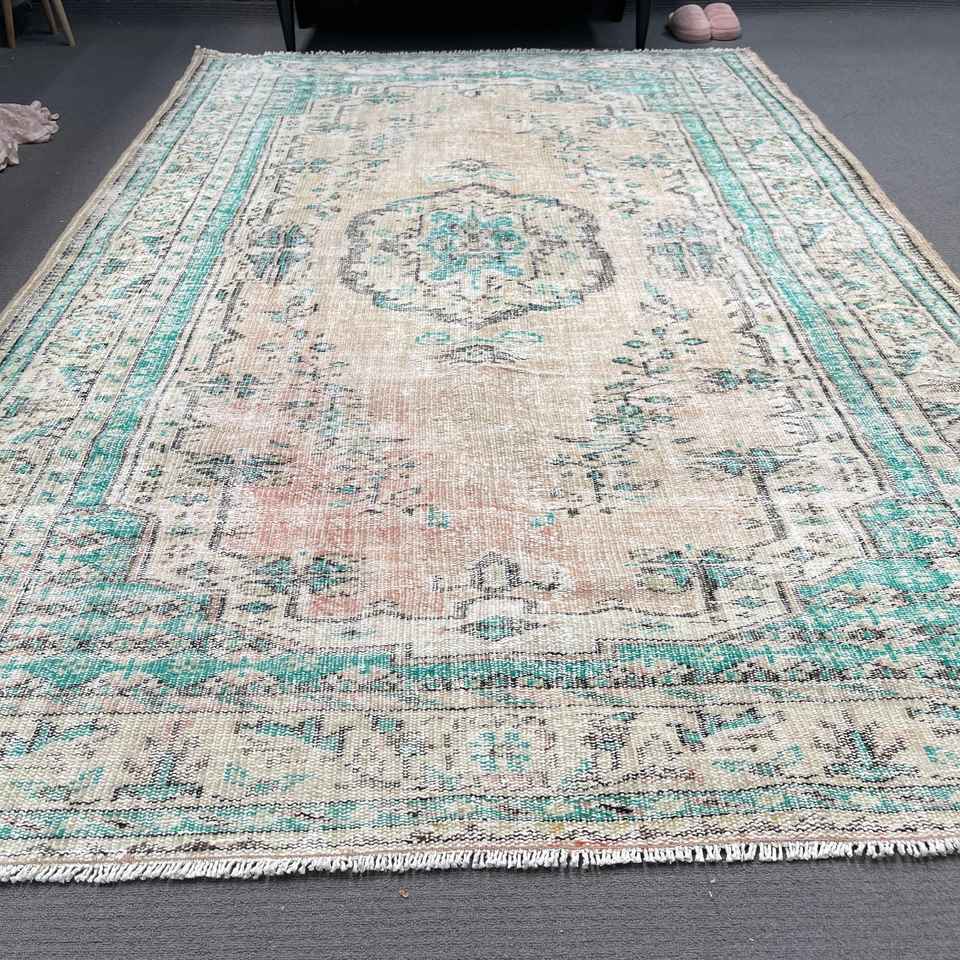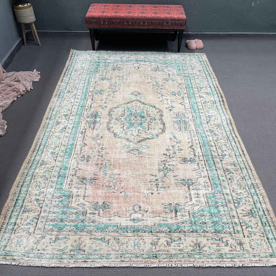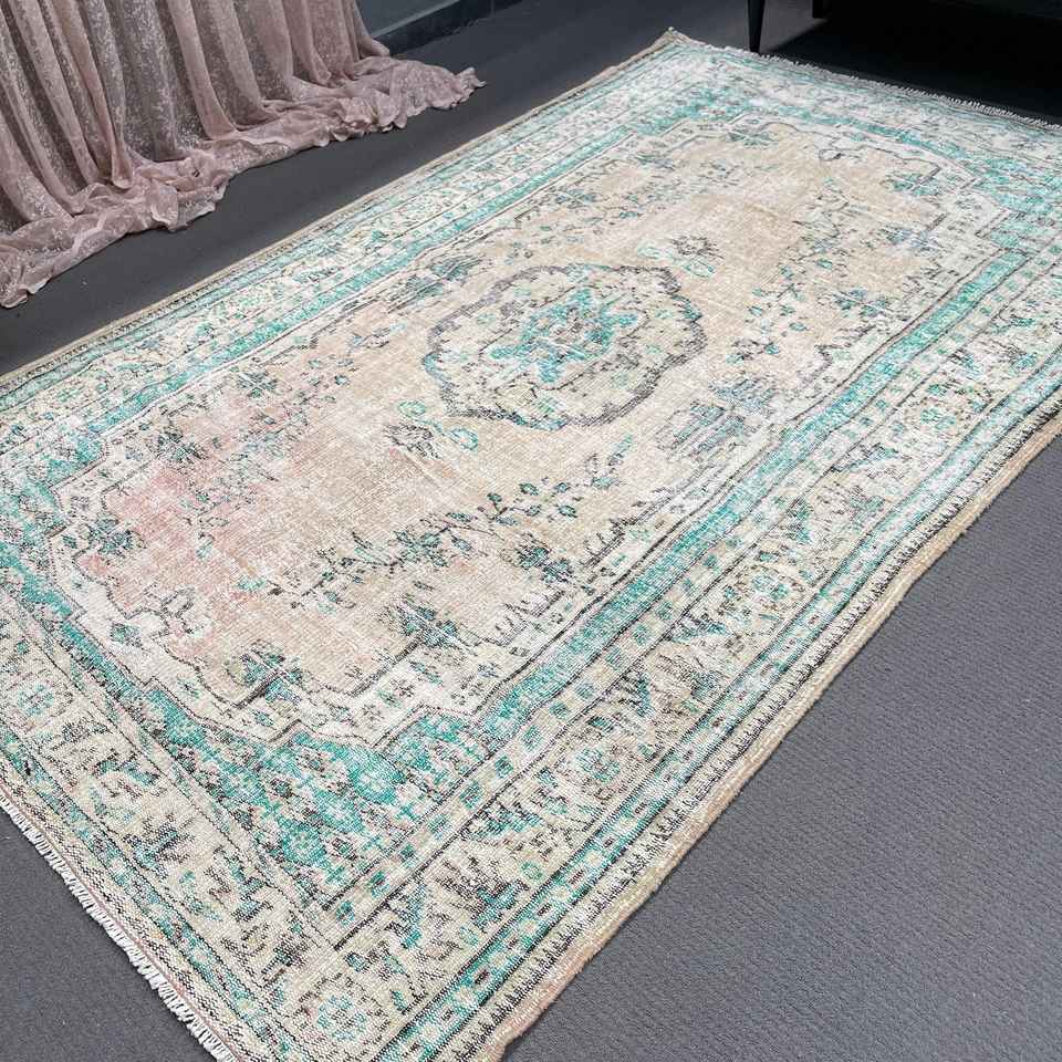 Alfombra Vintage, Alfombra Turca Grande de 5.7x9 pies, Alfombra de Lana con Estampado Animal Azul y Blanco
