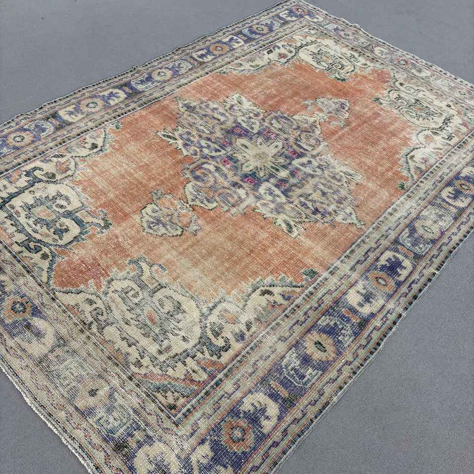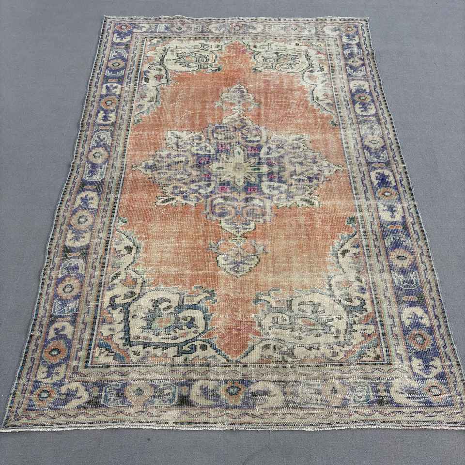 Alfombra Vintage, Alfombra Grande de 5.8x8.7 pies, Alfombra a Cuadros Azul