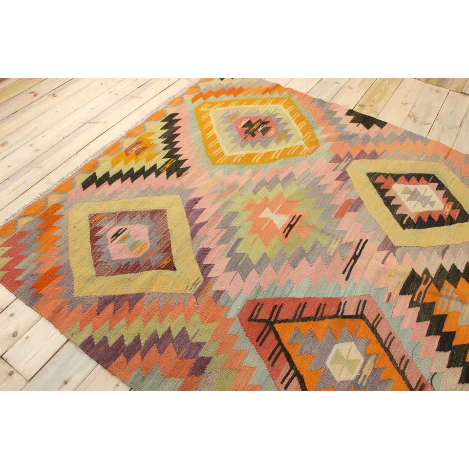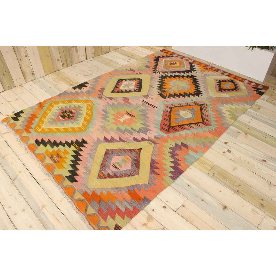 Alfombra Vintage, Alfombra Turca Grande de 5.8x8.8 pies, Alfombra de Lana con Diseño de Camuflaje Naranja