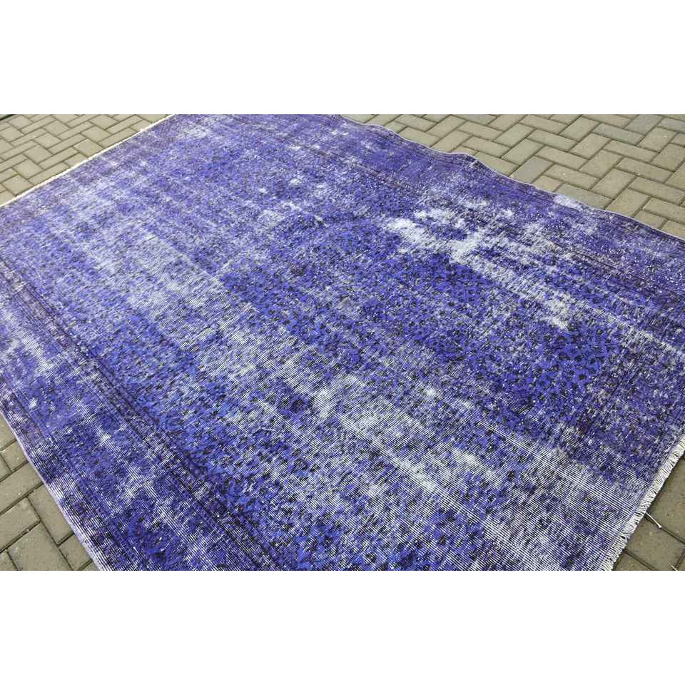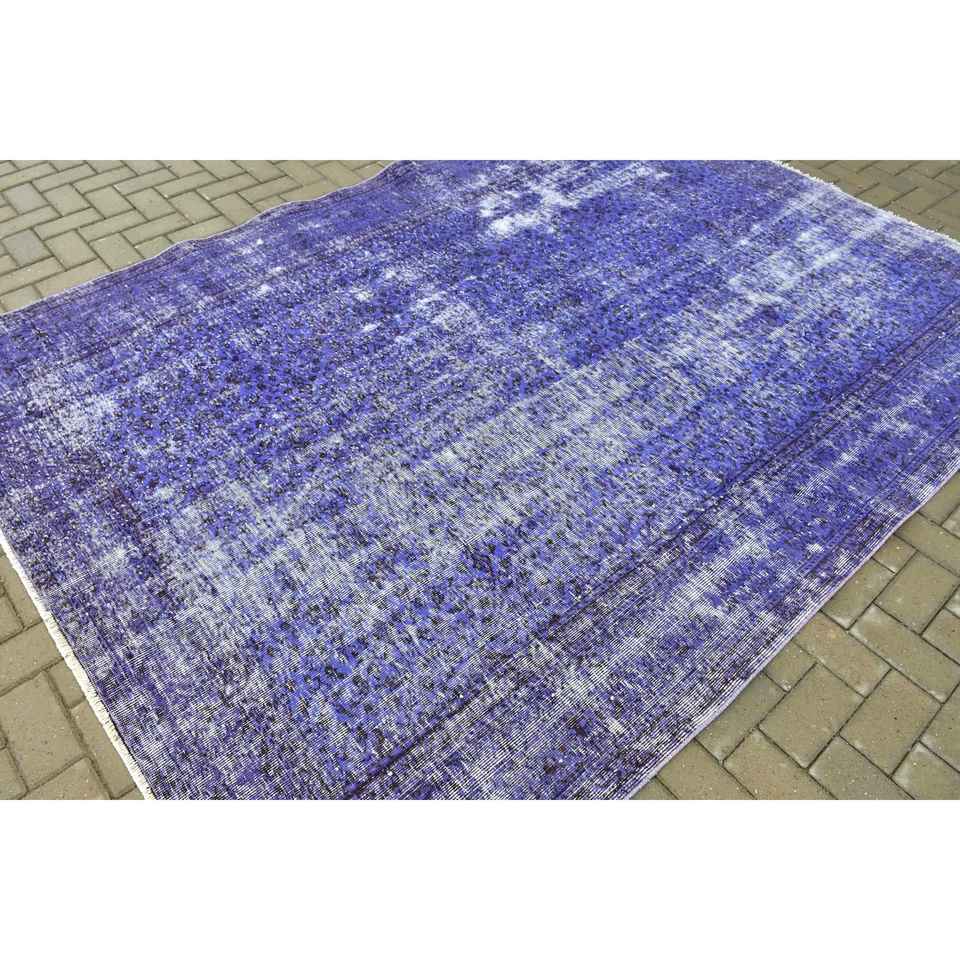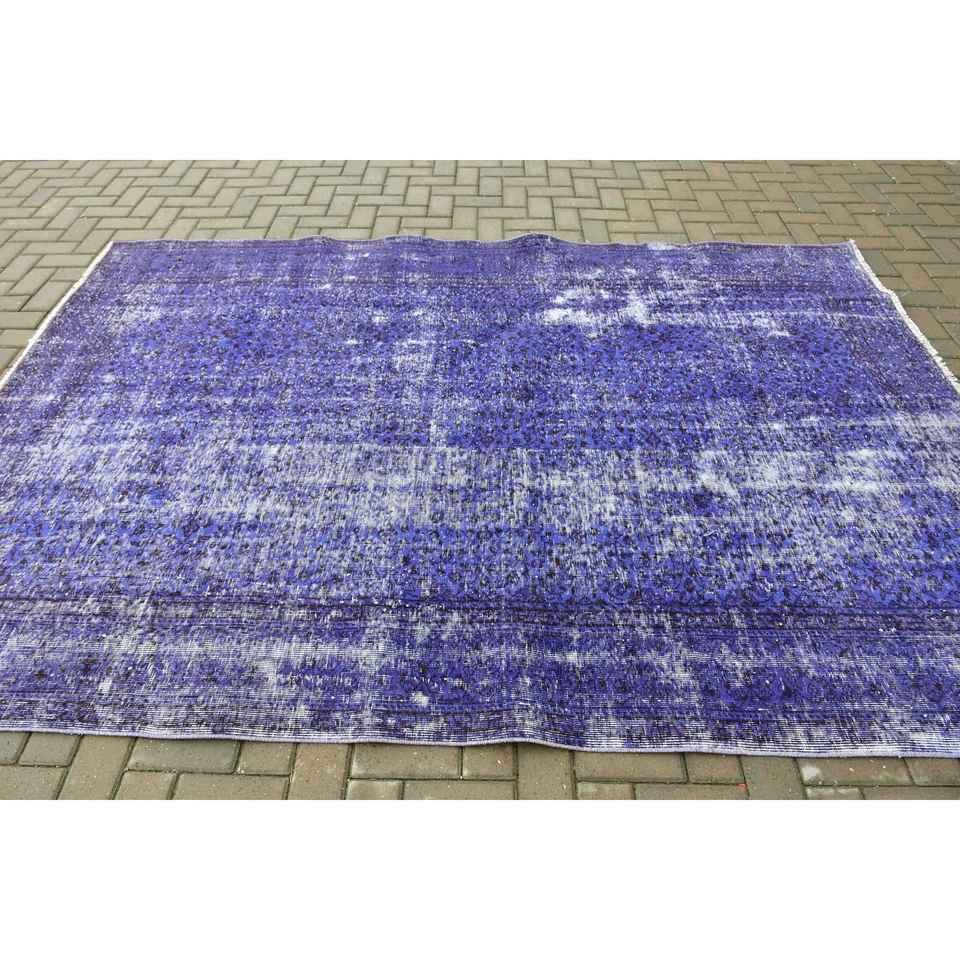 Alfombra Vintage, Alfombra Turca Grande de 6.46x9.2 pies, Alfombra de Lana con Diseño Floral Azul y Blanco