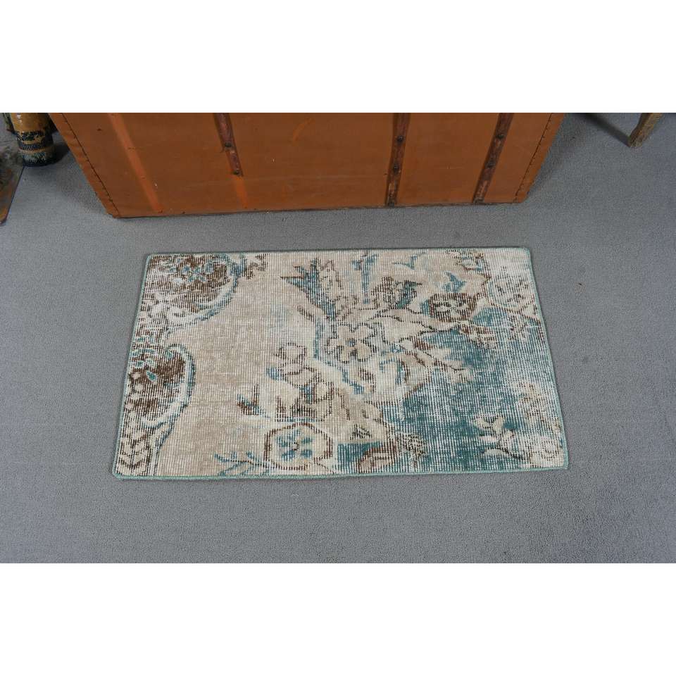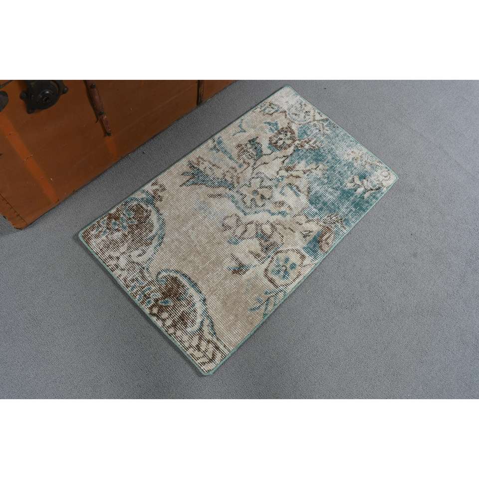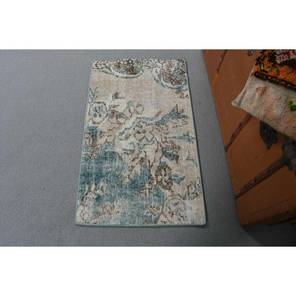 Alfombra Vintage de Lana Pequeña de 1.6x2.8 pies, Diseño de Parches Azules, Respaldo de Látex Ecológico