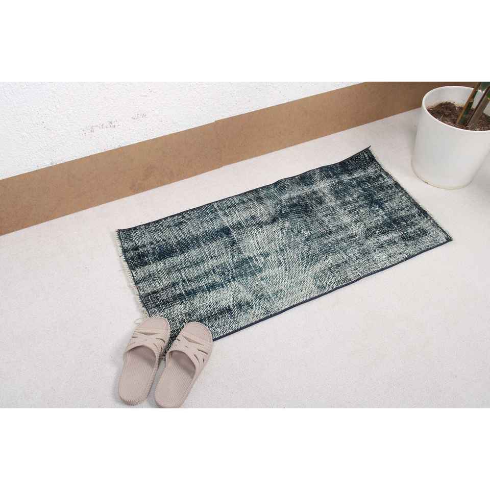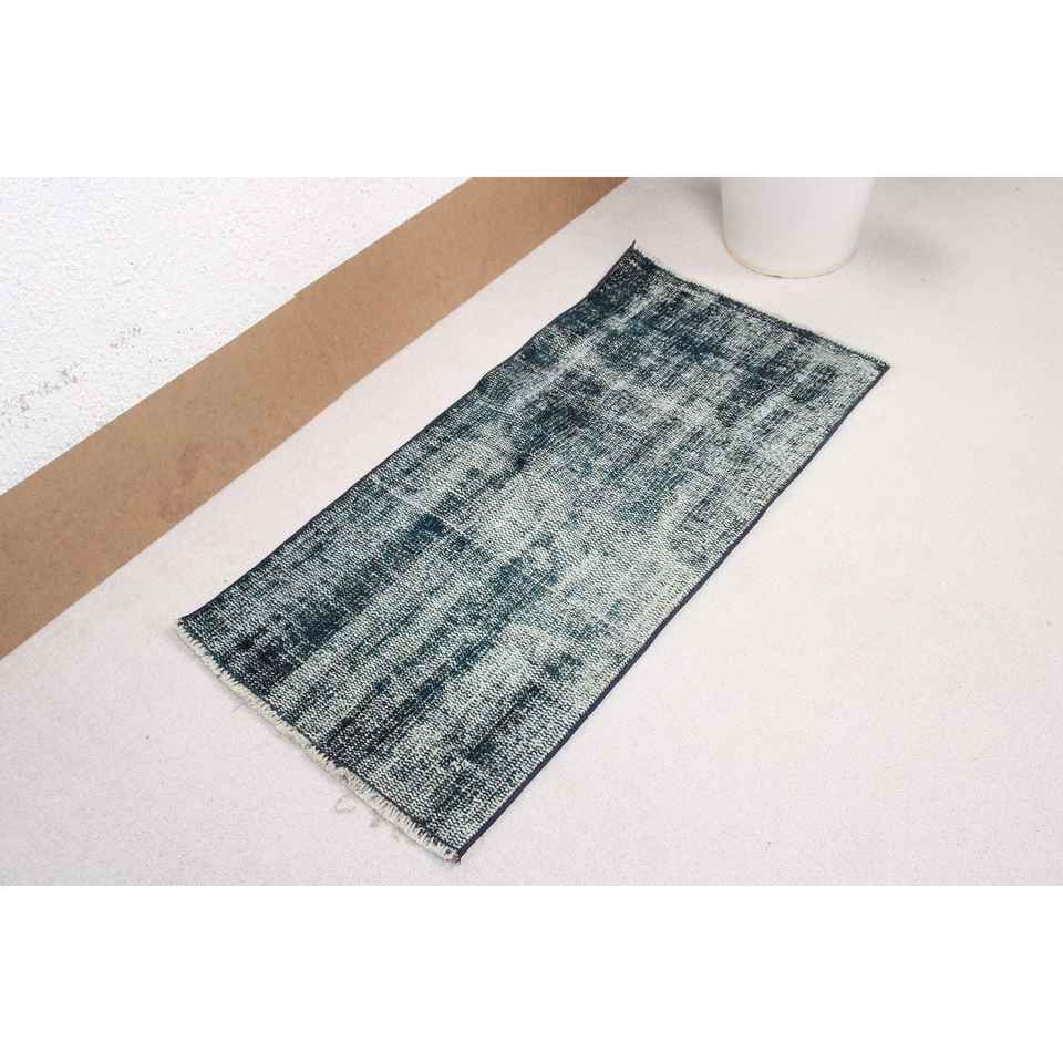 Alfombra Vintage, Pequeña Alfombra Turca de 1.6x3.2 pies, Alfombra de Lana con Puntos Azules y Grises