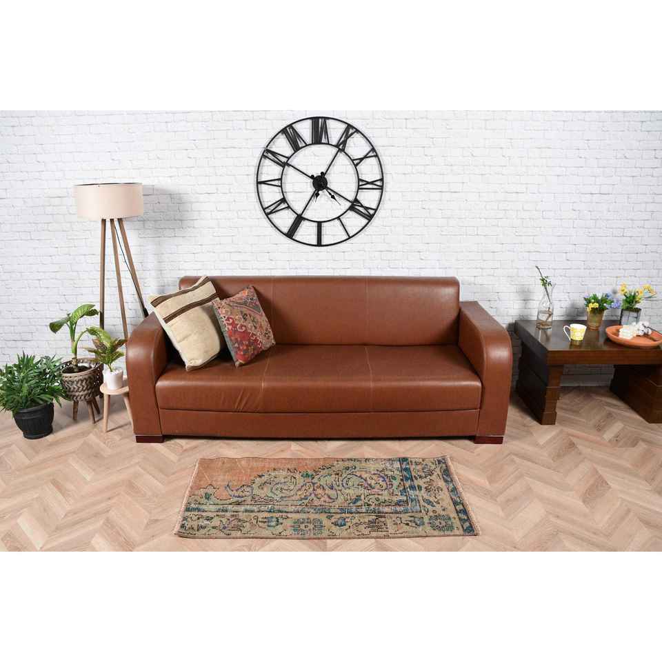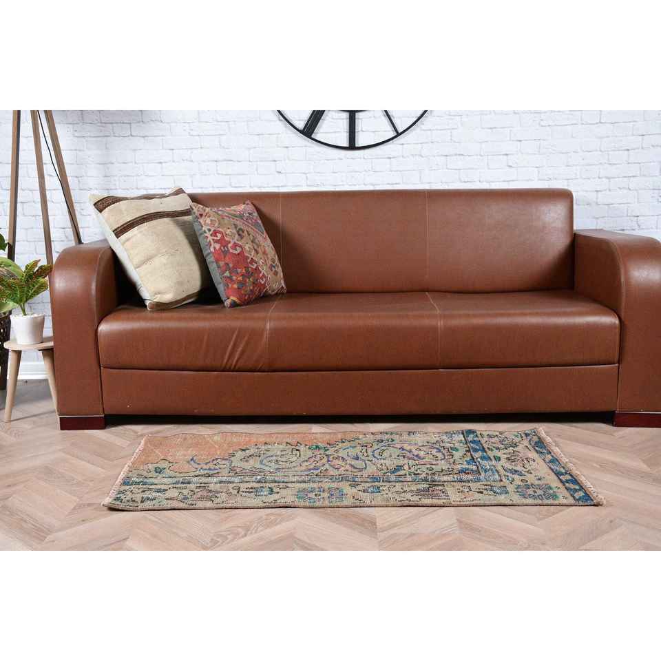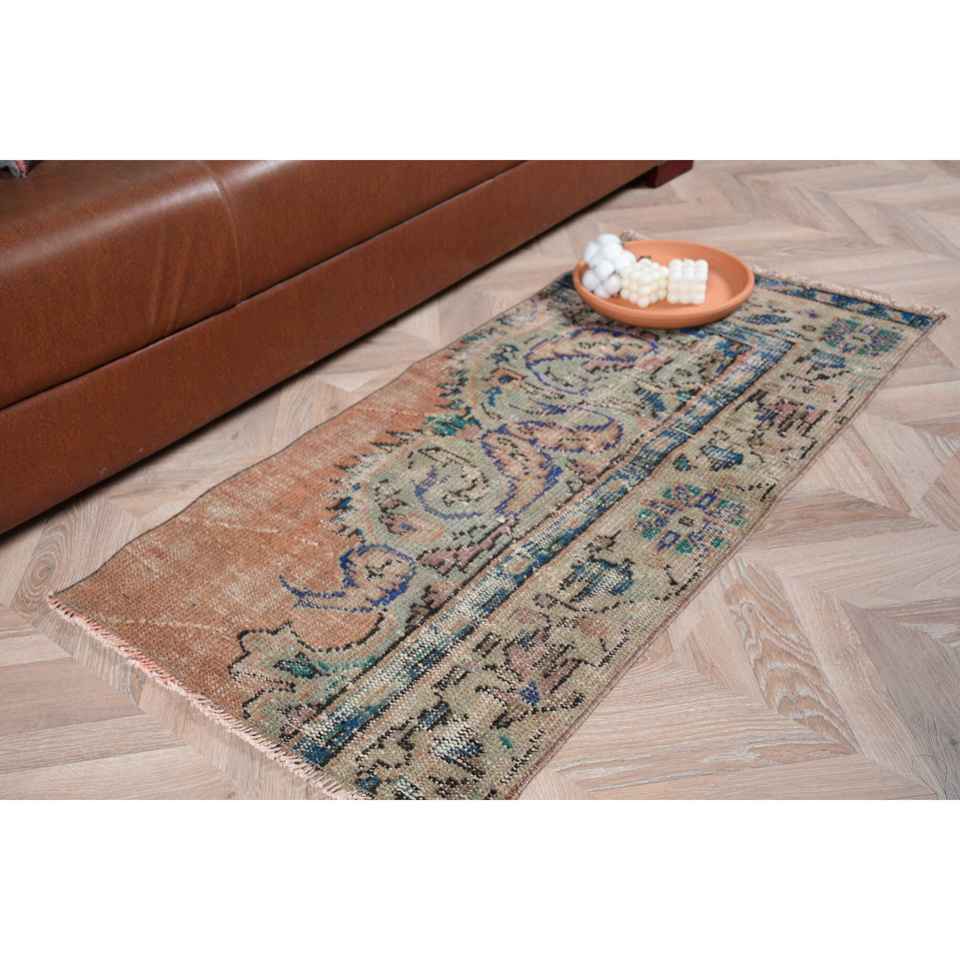Alfombra Vintage, Pequeña Alfombra Turca de 2x4 pies, Alfombra de Lana con Bordes Azules y Marrones