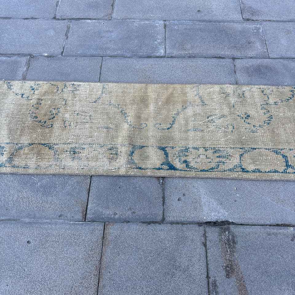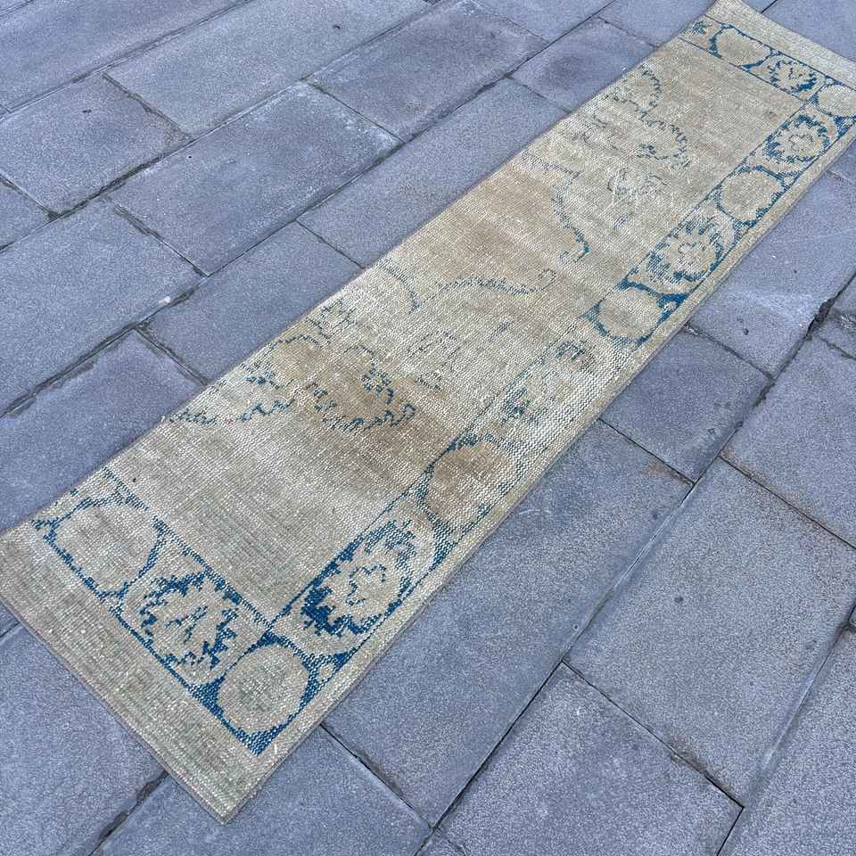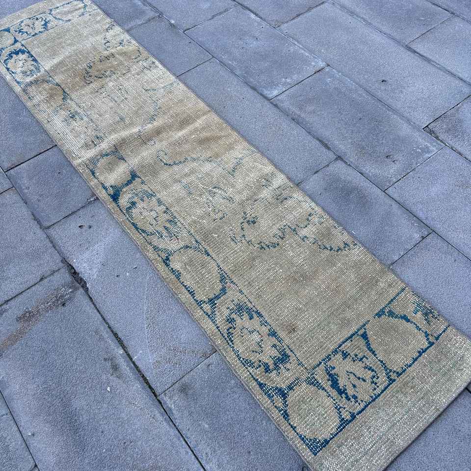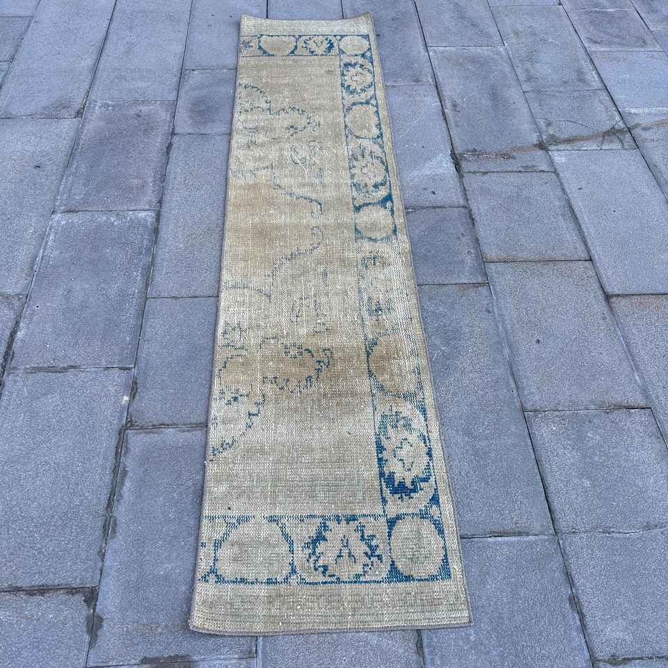 Alfombra Vintage de Estilo Runner de 1.7x7.5 pies (52x229 cm), Alfombra Turca con Bordes Azules