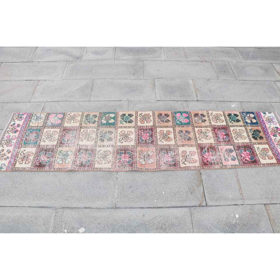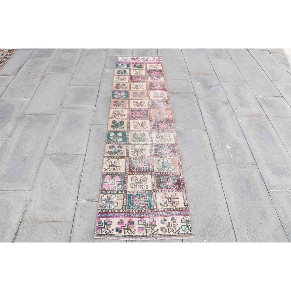 Alfombra Vintage Estilo Runner de 1.7x7 pies (53x213 cm), Alfombra Turca con Diseño de Cuadros Rosados