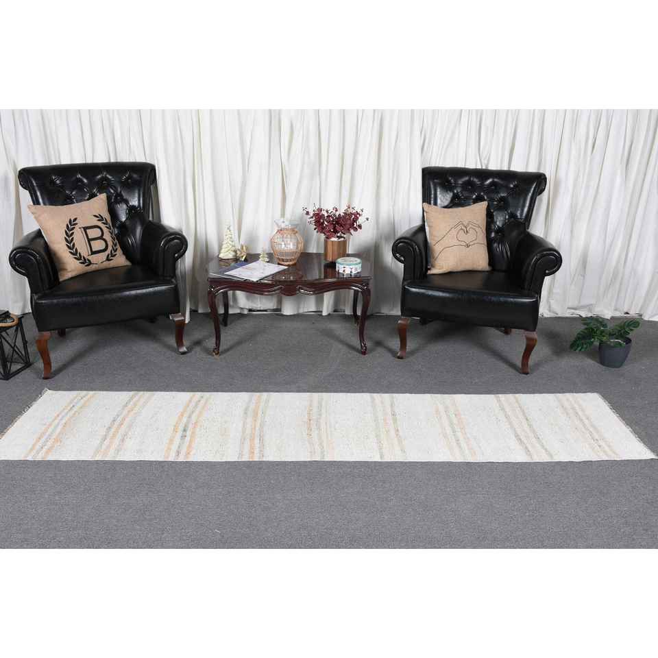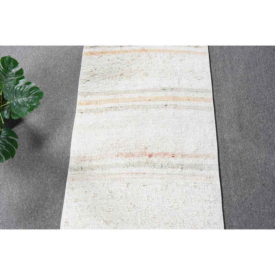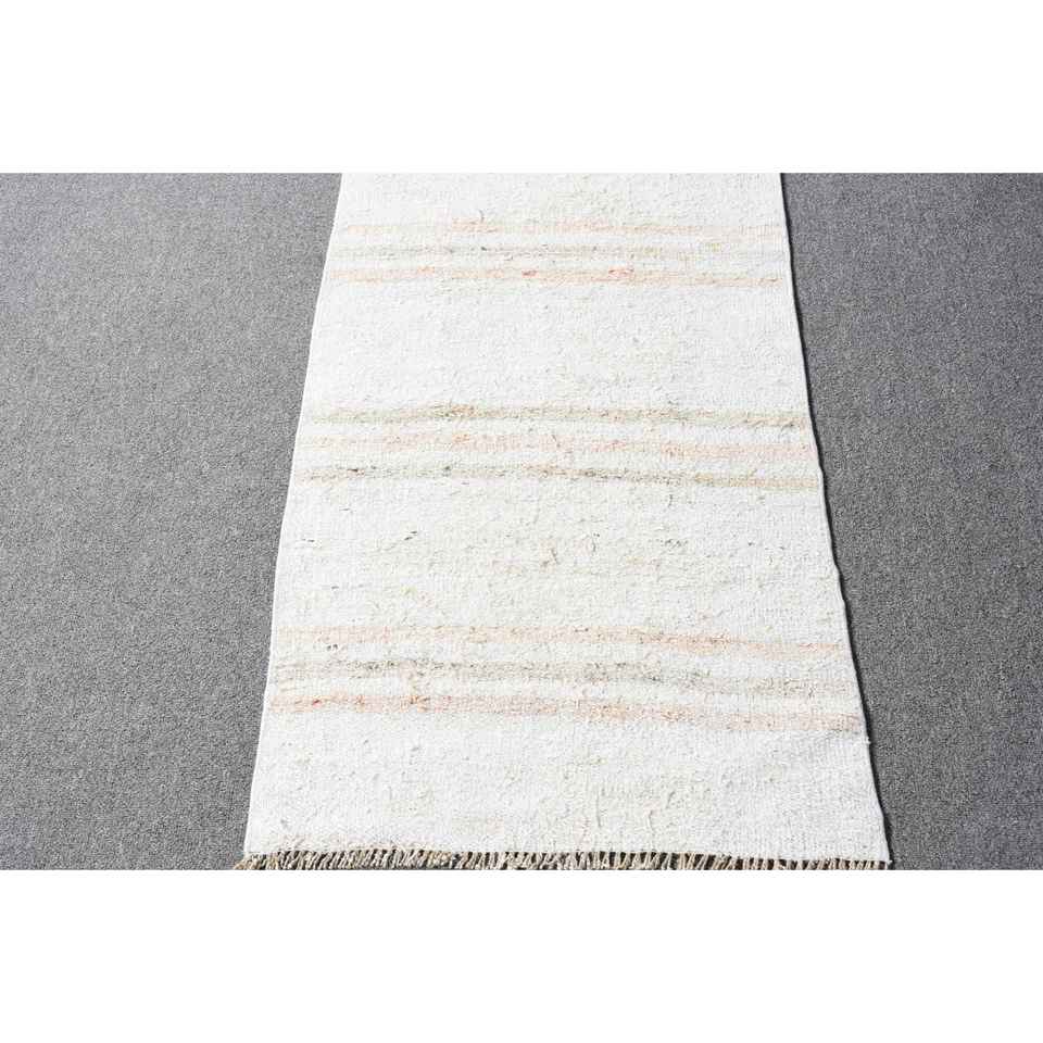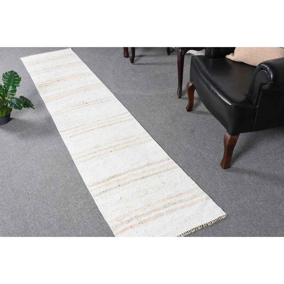 Alfombra Vintage Estilo Runner, Alfombra Turca de 1.8x9 pies, Alfombra de Lana Kilim Blanca