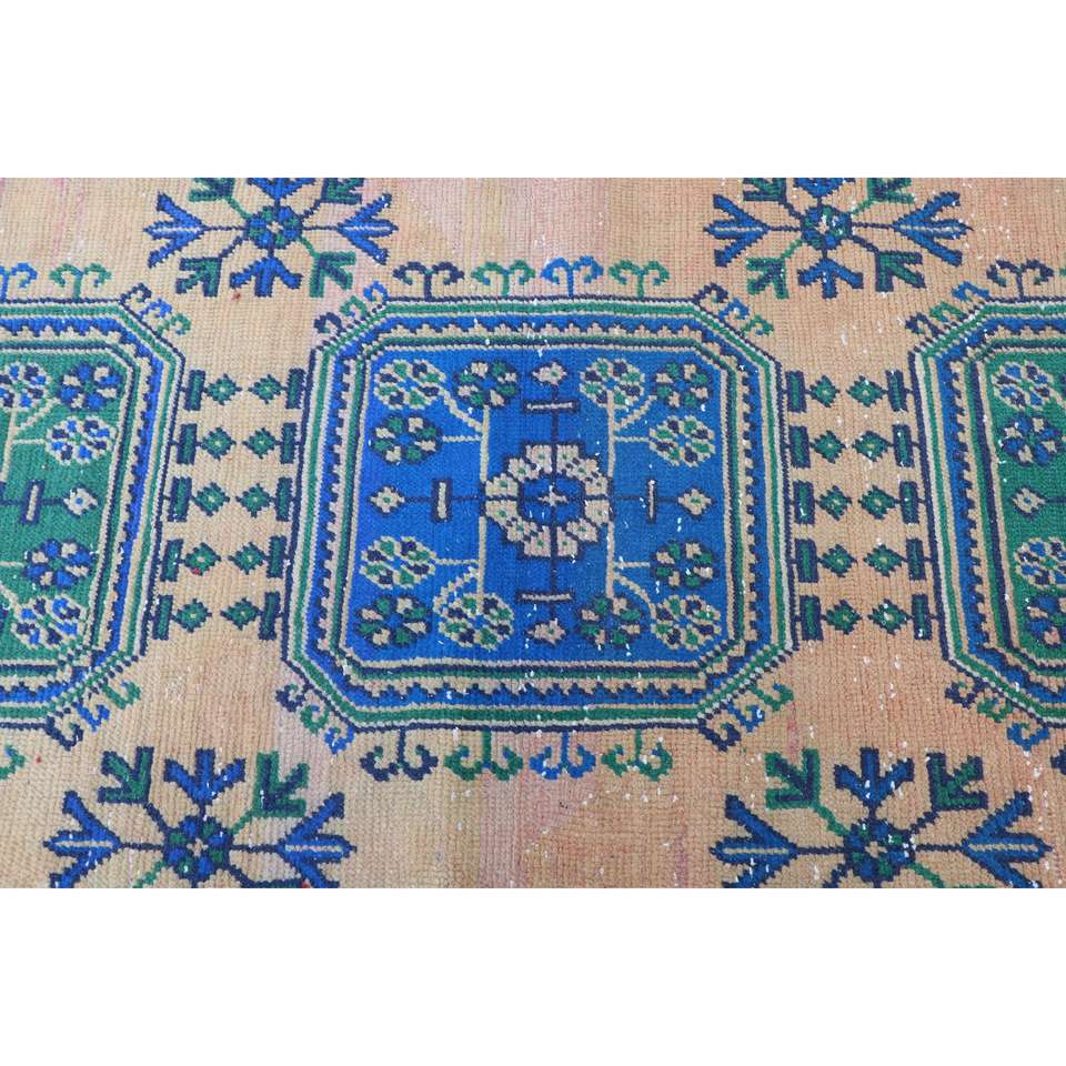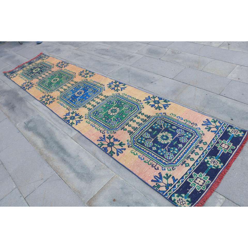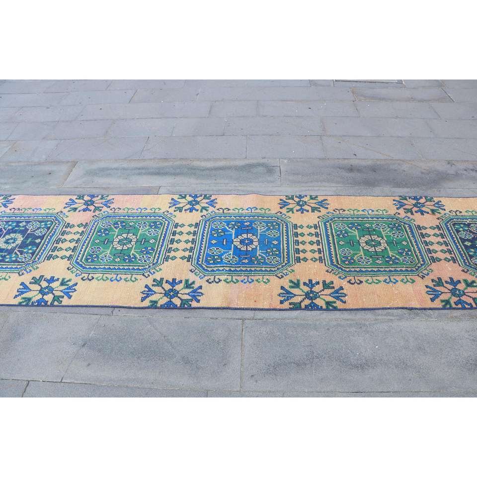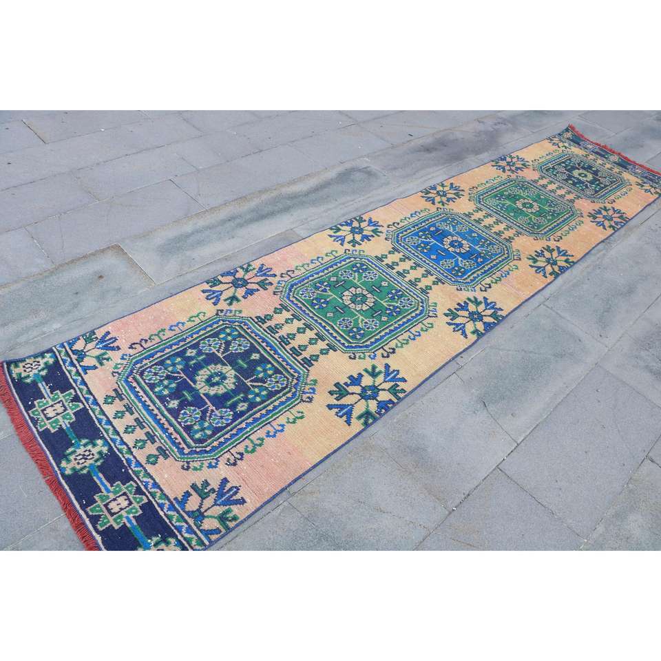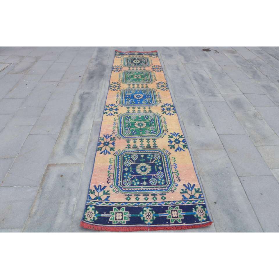 Alfombra Vintage de Estilo Runner de 2.7x12.9 pies (81x392 cm), Alfombra Oriental Azul Turca